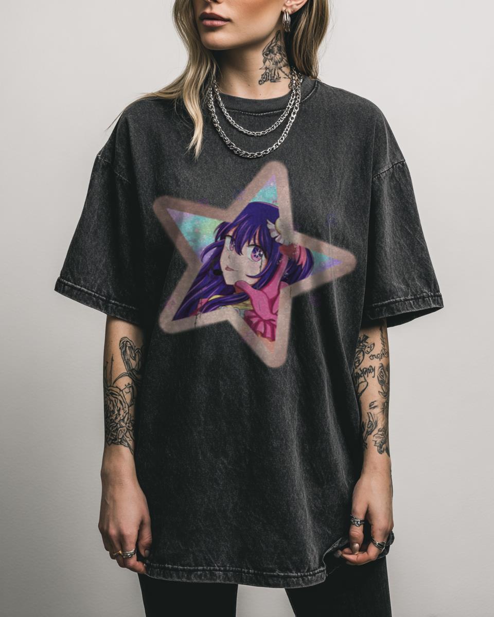 Captivated by the dazzling star of Oshi No Ko? Show your love for the iconic idol with this ‘Ai Hoshino’ graphic tee. Featuring the beloved character from the popular anime and manga series, this design is perfect for fans who appreciate her charming presence and the unique story of Oshi No Ko. Why You’ll Love…