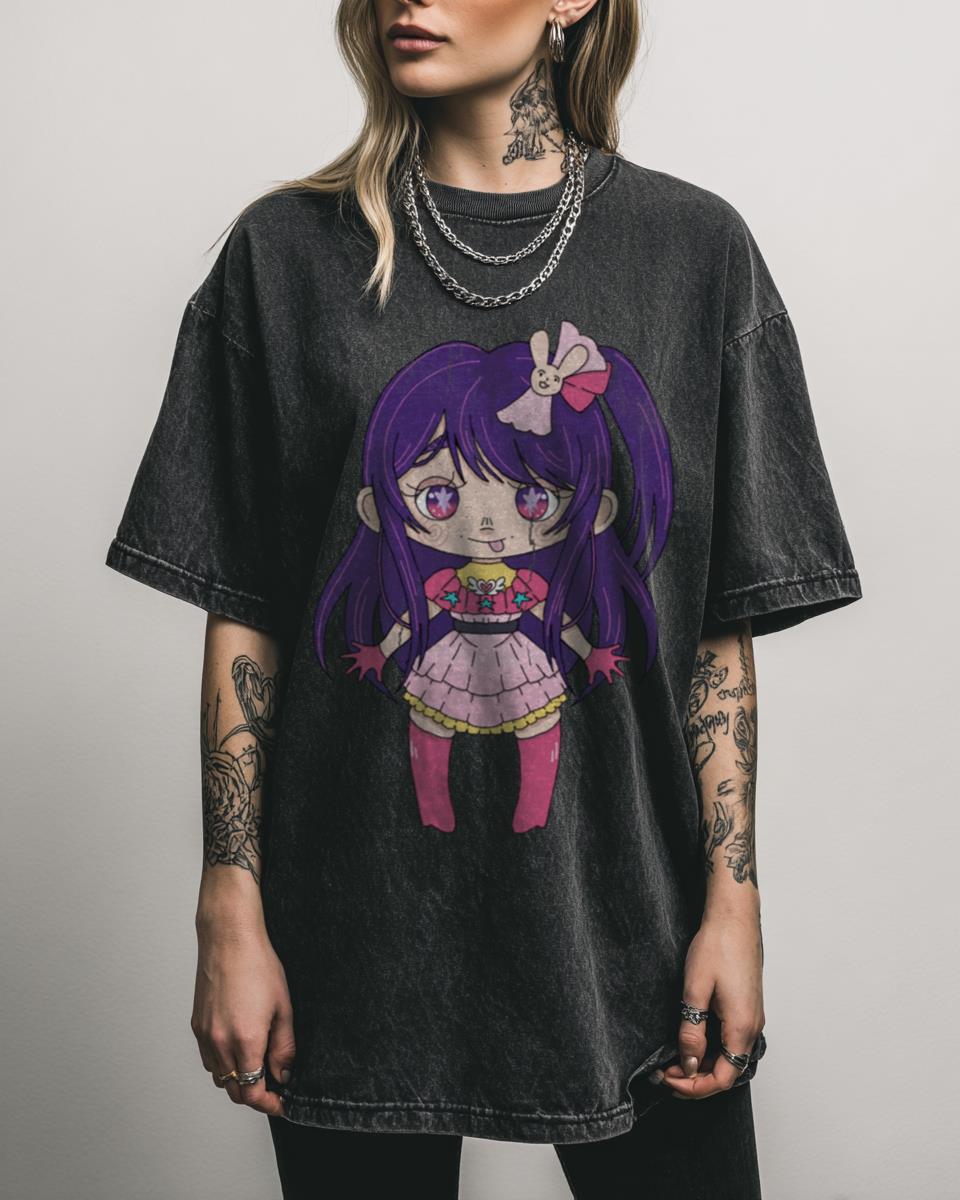 Adorn yourself with the captivating charm of Ai Hoshino from Oshi No Ko! This delightful “Oshi No Ko – Ai” fanart design showcases the beloved idol character in a cute and vibrant style. It’s the perfect way for fans to express their adoration for Ai Hoshino and the compelling narrative of the Oshi No Ko…