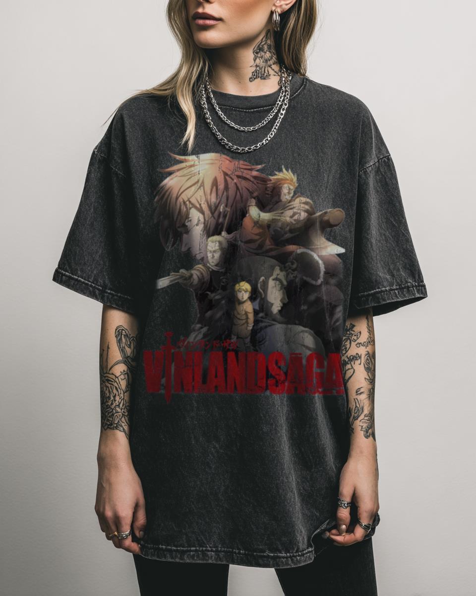Are you a devoted fan of the epic Viking tale, Vinland Saga? Wear your allegiance to the legendary ‘Vinland Saga’ with this iconic logo T-shirt. This design proudly displays the emblem of the critically acclaimed Japanese manga and anime series, a must-have for fans of Thorfinn, Thors, and the brutal yet beautiful world of Vikings….