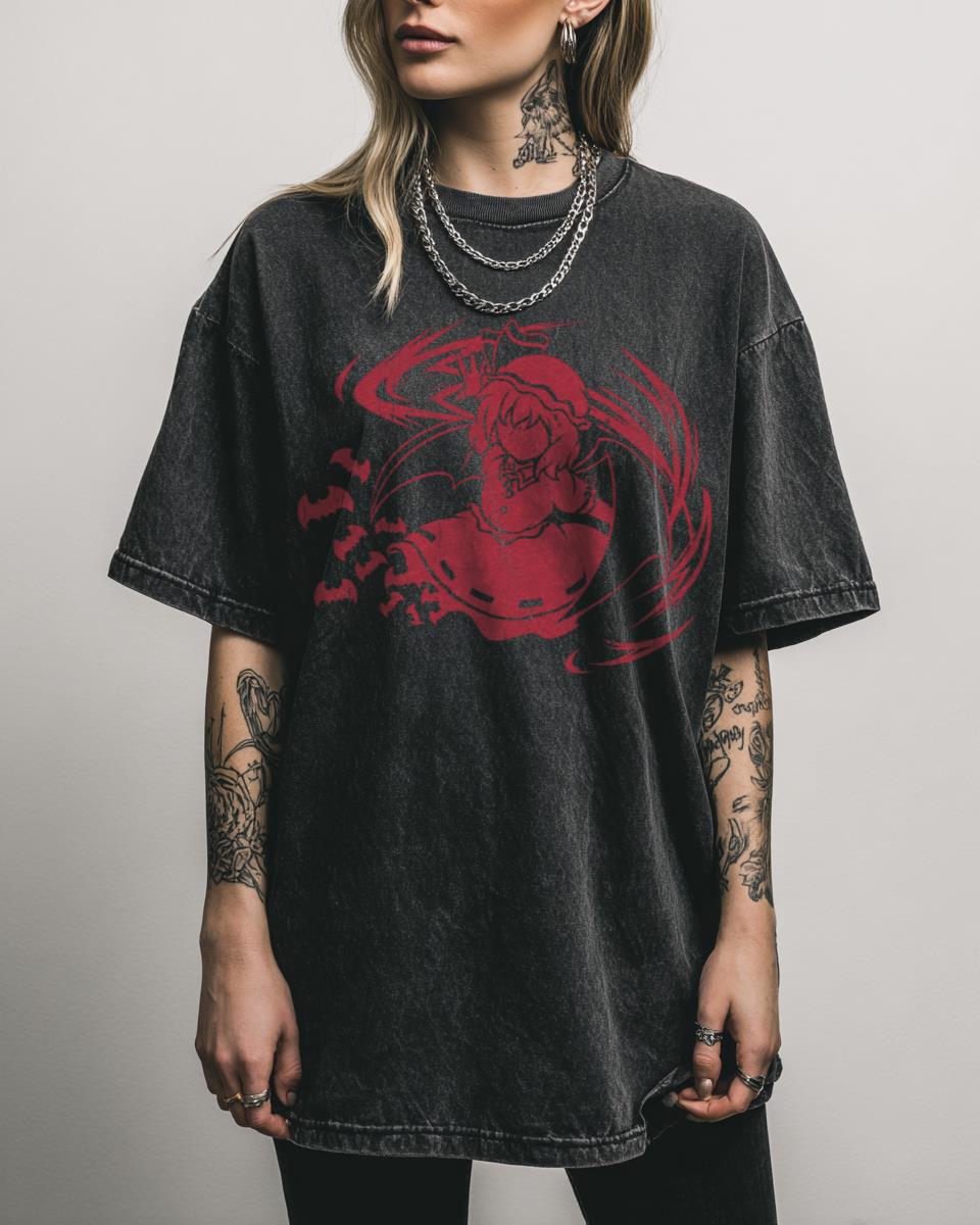 Are you captivated by the powerful mistress of the Scarlet Devil Mansion? Embrace the elegant darkness of ‘Touhou Project Character Silhouette – Remilia Scarlet’ with this striking graphic tee. Featuring the iconic vampire in a vibrant red silhouette, this design is perfect for fans of the Touhou Project, Japanese anime, and unique character art from…