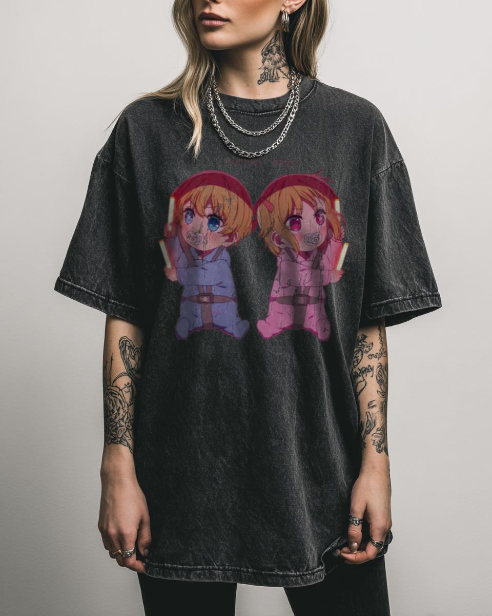 Ready to bring some anime joy and humor to your wardrobe? Get ready for ‘Party Time With Siblings’ featuring Aqua and Ruby from Oshi No Ko in a hilariously energetic dance! This design perfectly captures the playful and meme-worthy spirit of the series, making it an instant conversation starter. It’s a vibrant, funny tribute to…