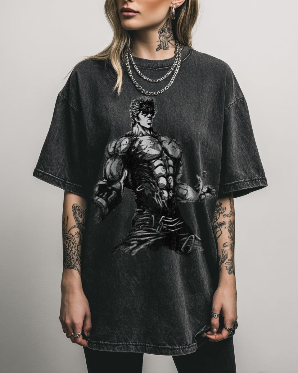 Channel your inner martial arts master with this iconic design? Unleash the power of Hokuto Shinken with this “Angry Kenshiro Essential” T-shirt, a tribute to the legendary Fist of the North Star. This retro anime graphic captures Kenshiro’s fierce determination, making it an essential piece for fans of classic 80s shonen action and martial arts…