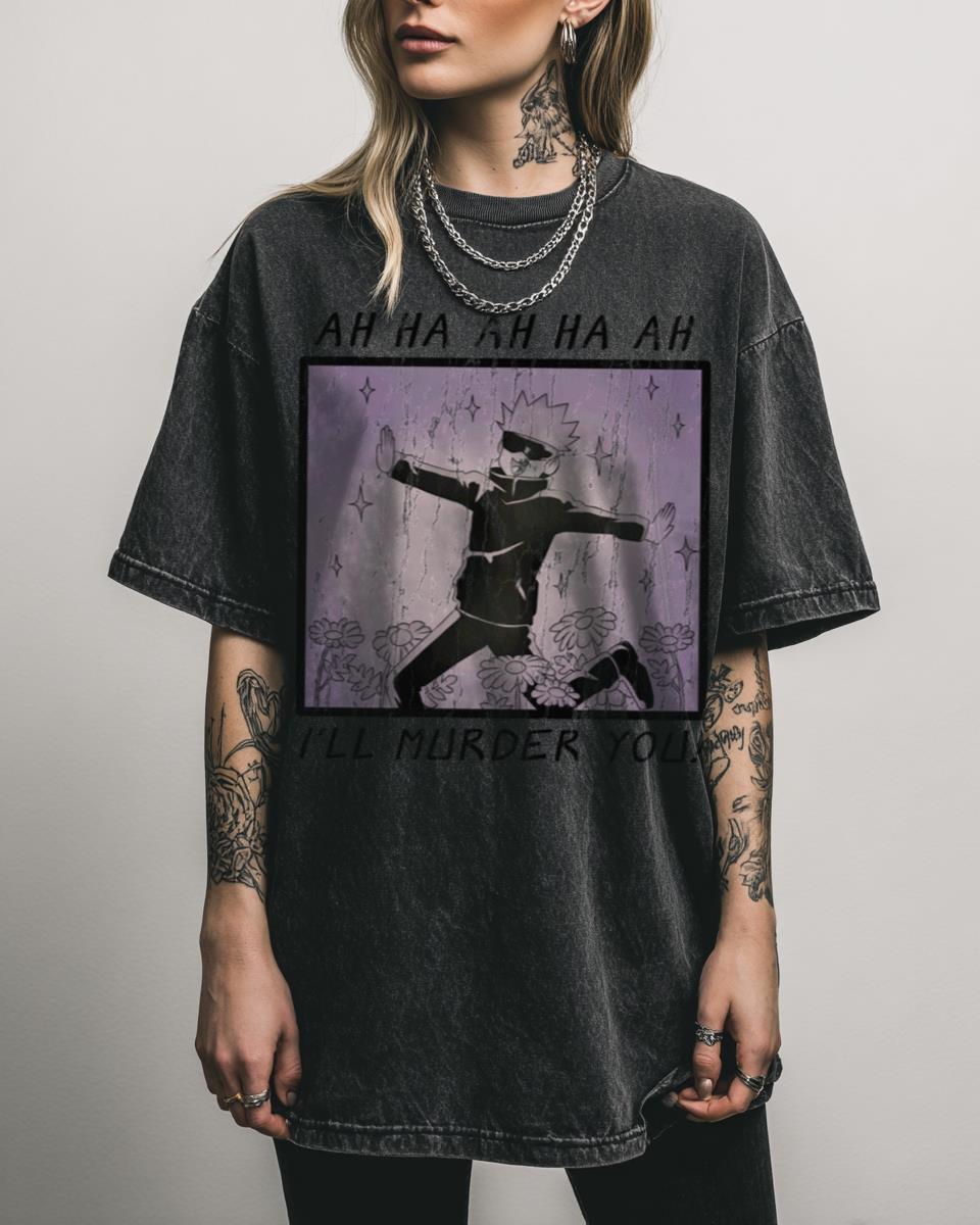 Inject some cursed energy and humor into your wardrobe with this hilarious JJK tee! Share a laugh with this adorable ‘Doodle Funny Quote’ graphic, celebrating the dynamic duo of Gojo and Geto from Jujutsu Kaisen. This charming chibi-style fanart captures the playful side of these powerful sorcerers, complete with a witty quote that any JJK…