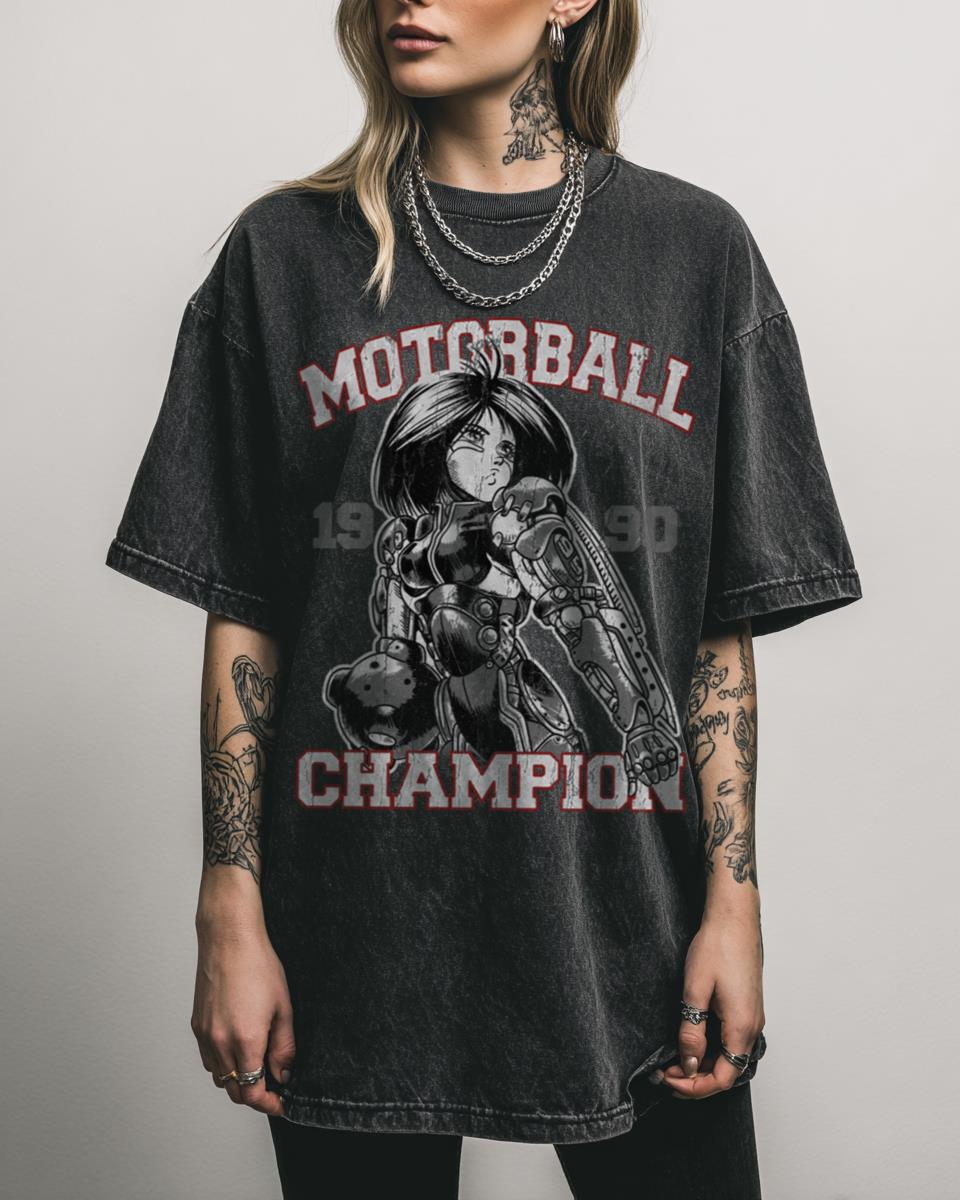 Are you ready for a high-octane cyberpunk battle? Gear up with this Alita Battle Angel Motorball Champion 90s anime T-shirt! This design captures the intense action and dystopian aesthetic of Gunnm, celebrating Alita’s legendary prowess in the Motorball arena. Perfect for fans of classic cyberpunk manga and thrilling sci-fi adventures. Why You’ll Love This Alita…