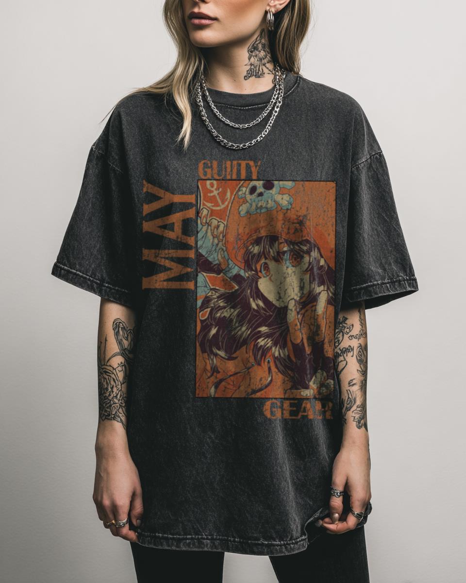 Looking for the Perfect Guilty Gear May T-Shirt? Dive into the world of Guilty Gear with this adorable **fan-created Guilty Gear May T-shirt**. Featuring a charming graphic of the spunky character, this black acidwash tee is an artistic expression perfect for any anime and fighting game enthusiast.