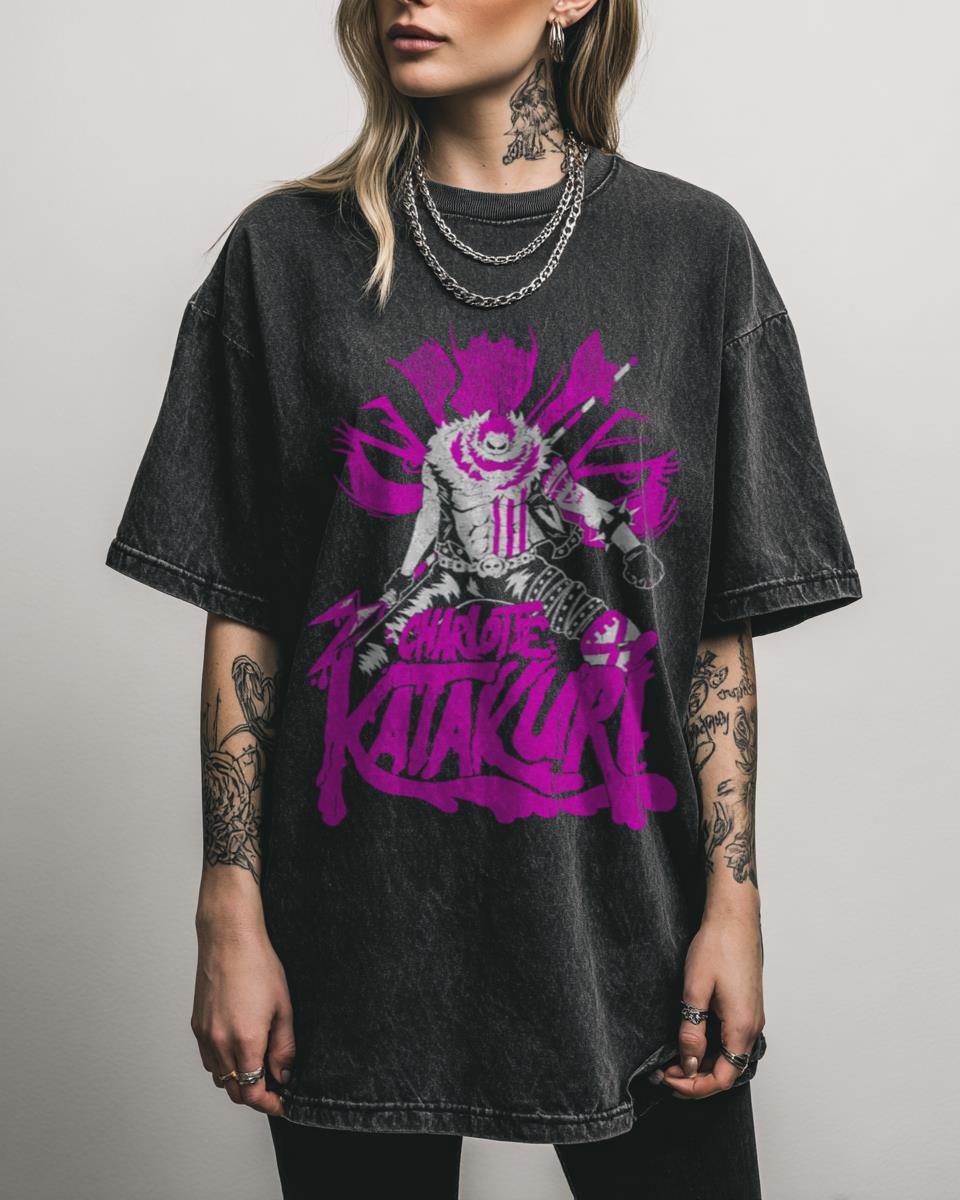Are you captivated by the formidable strength and honor of Charlotte Katakuri from One Piece? Command respect with this powerful Black Acidwash T-Shirt featuring Charlotte Katakuri, the legendary Sweet Commander of the Big Mom Pirates from One Piece. This design captures the stoic intensity and incredible power of one of the series’ most iconic antagonists,…