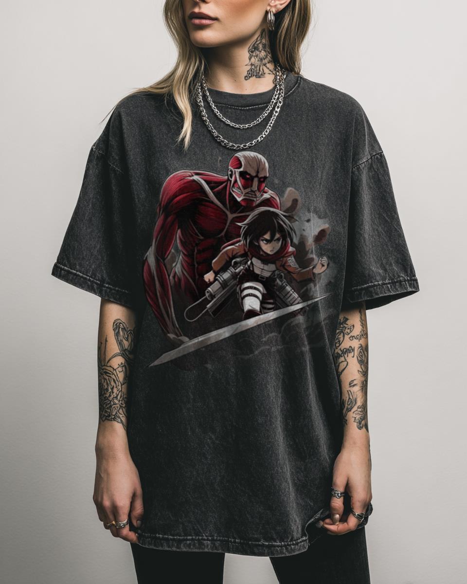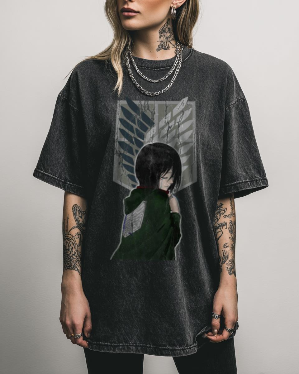 Are you a loyal soldier of the Survey Corps? Show your unwavering dedication with this minimalist ‘Mikasa Ackerman’ design, a powerful tribute to the iconic character from Attack on Titan. Perfect for fans of the epic anime and manga series, this shirt captures Mikasa’s strength and resolve, making it an essential piece for any Attack…