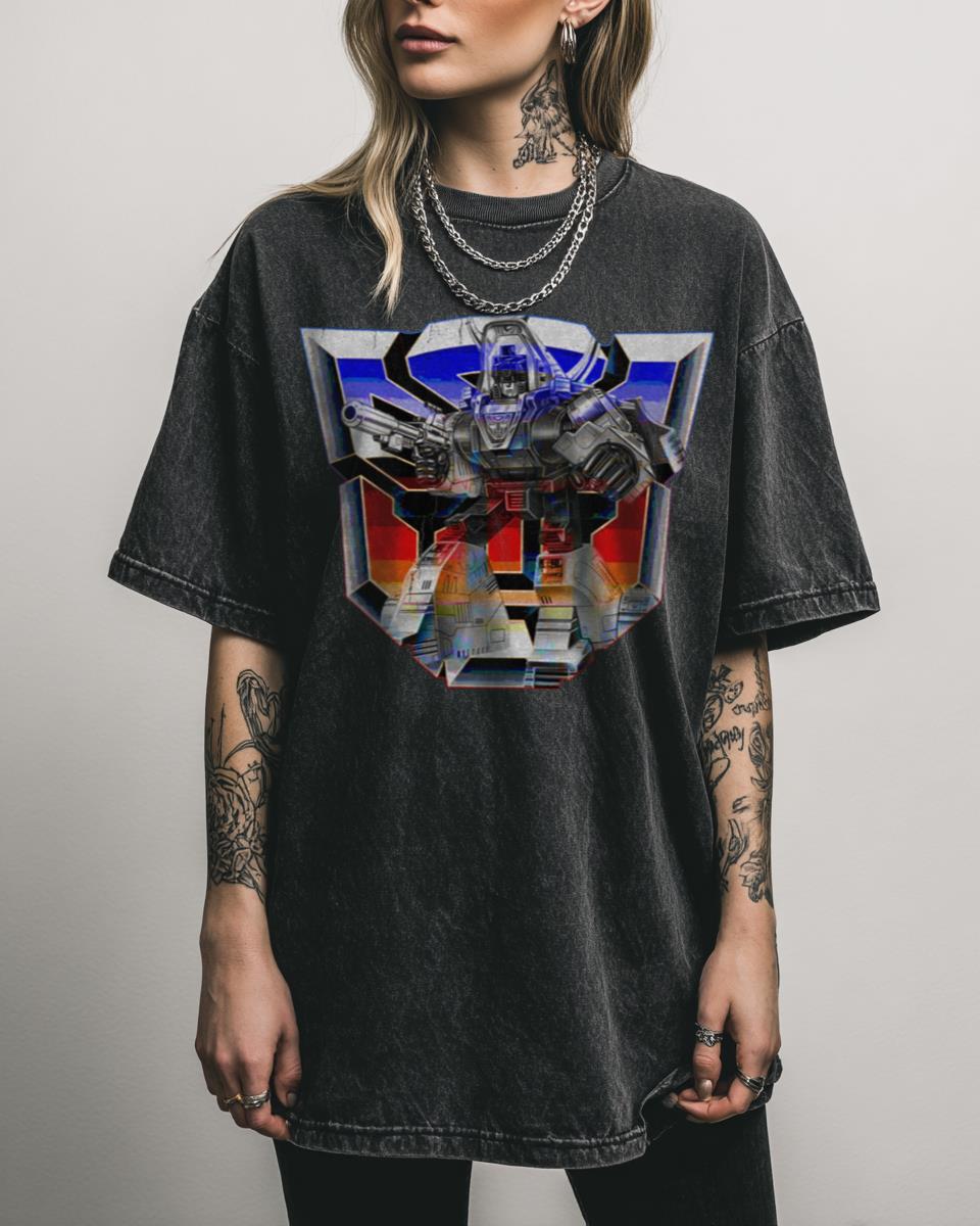 Ready to witness a classic Decepticon transformation? Relive the glory days of Generation 1 with this awesome ‘Blitzwing Transformation’ design! This artwork captures the iconic triple-changer Decepticon Blitzwing in his powerful transforming sequence from the classic 80s Transformers cartoon. Printed on a stylish Black Acidwash T-shirt, it’s a must-have for G1 fans, collectors, and anyone…