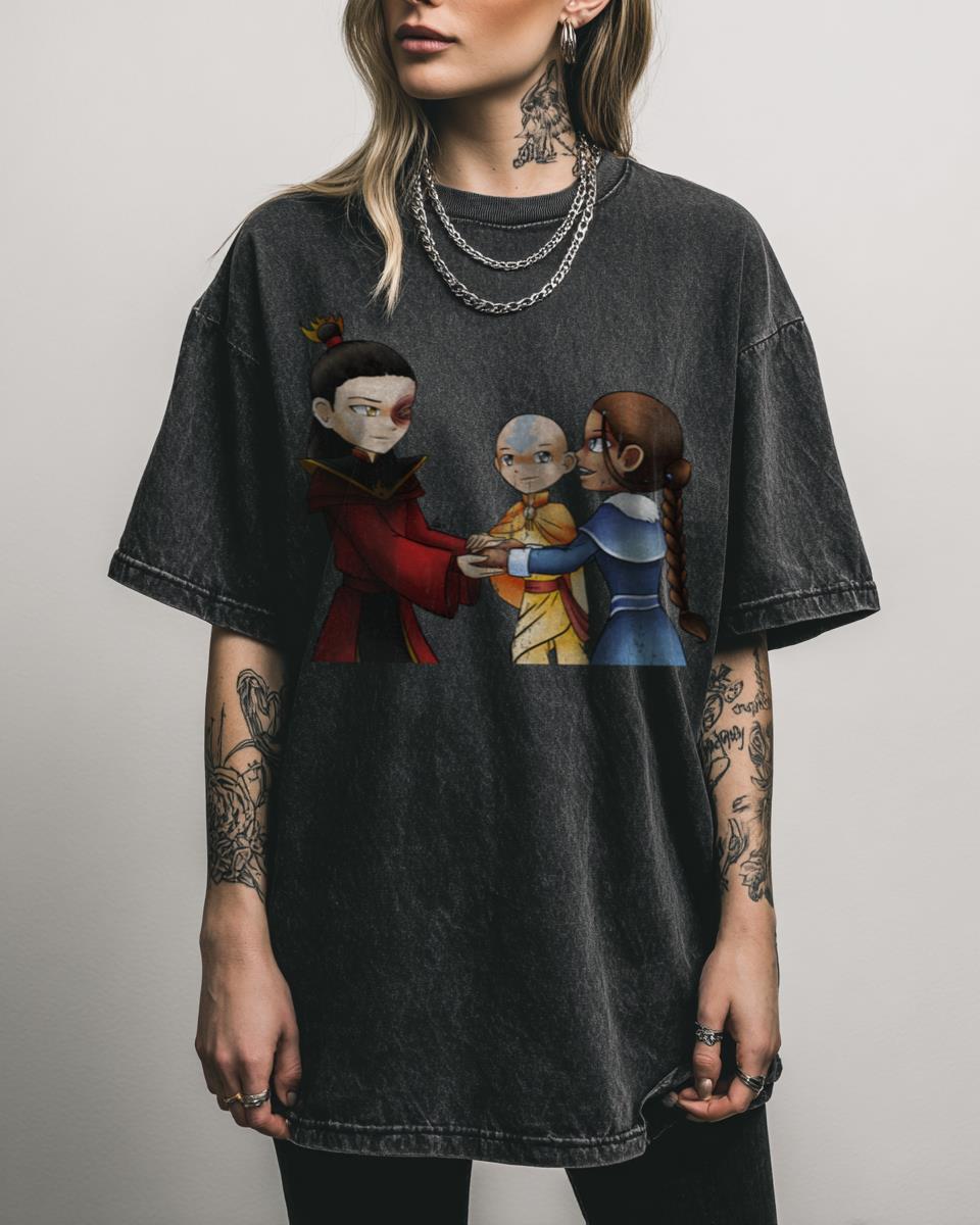 Join “The Gaang” with This Avatar The Last Airbender Team Avatar Cartoon T-Shirt? Unite with your favorite heroes with this Avatar The Last Airbender Team Avatar Cartoon T-Shirt! This black acidwash graphic tee celebrates the legendary “Gaang” – Aang, Katara, Sokka, Toph, and Zuko – in a design inspired by the beloved animated series, perfect…
