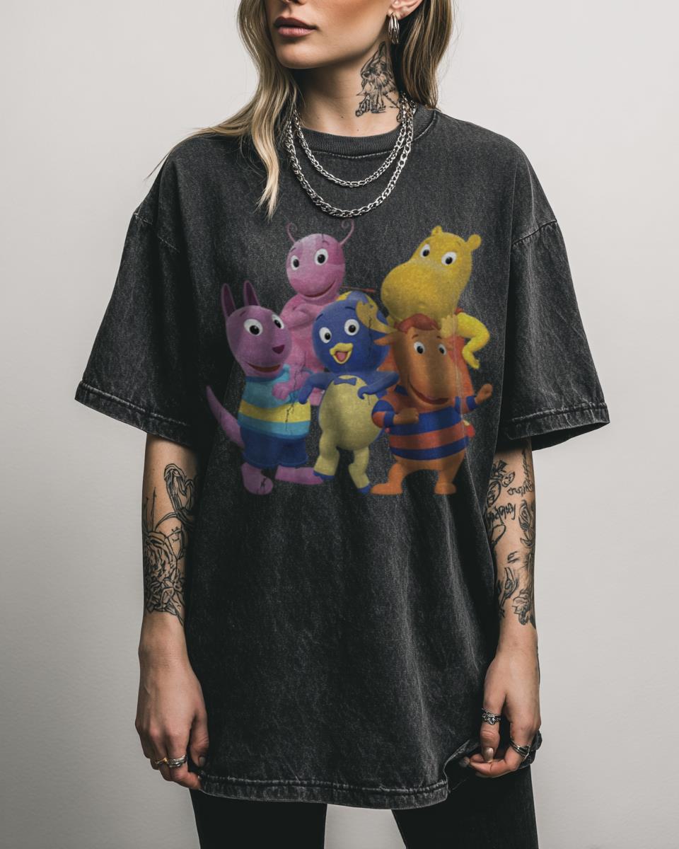 What Makes This Backyardigans Black Acidwash Tee a Fan Favorite? Dive into nostalgia with this fan-created Backyardigans Black Acidwash T-Shirt, featuring your favorite characters from the beloved Nickelodeon cartoon. This unique graphic tee, with its trendy acidwash finish, offers a blend of retro charm and modern style, perfect for anyone who grew up with Austin,…