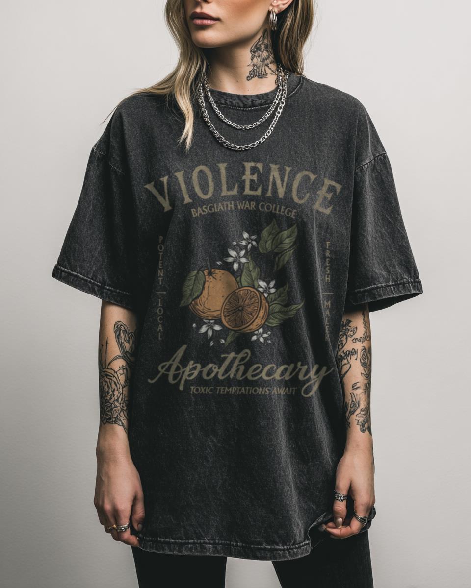 What Makes This Fourth Wing Violence Apothecary T-Shirt Special? Declare your allegiance to Basgiath War College with this captivating Fourth Wing Violence Apothecary T-Shirt. Featuring a design inspired by Rebecca Yarros’s epic fantasy series, this black acidwash tee is a must-have for every dragon rider and book lover. Why This Fantasy Book Tee Is a…