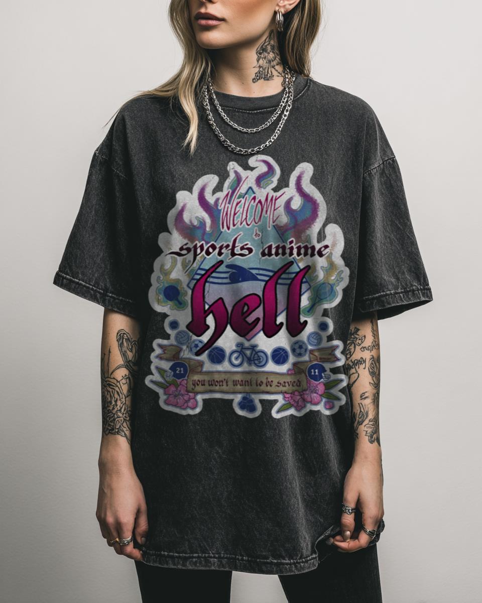 Do you find yourself endlessly immersed in the dramatic world of sports anime? Embrace your dedication to the genre with this humorous ‘Sports Anime Hell’ graphic T-shirt. This design playfully acknowledges the captivating, often intense, world of anime sports like basketball, volleyball, and swimming, perfect for weeaboos and fans who know the struggle of binge-watching….