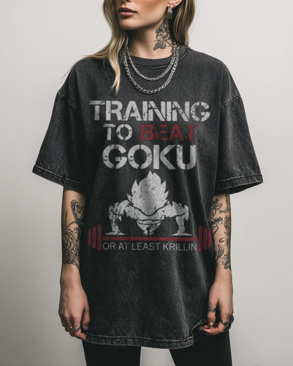 Are You Ready to “Train to Beat Goku”? Accept the ultimate challenge with this Train to Beat Goku Dragon Ball Z T-shirt. This fan-created graphic tee is the perfect motivational wear for anime fans hitting the gym, inspiring you to push your limits just like a true Saiyan warrior. Features of This Motivational Anime Gym…