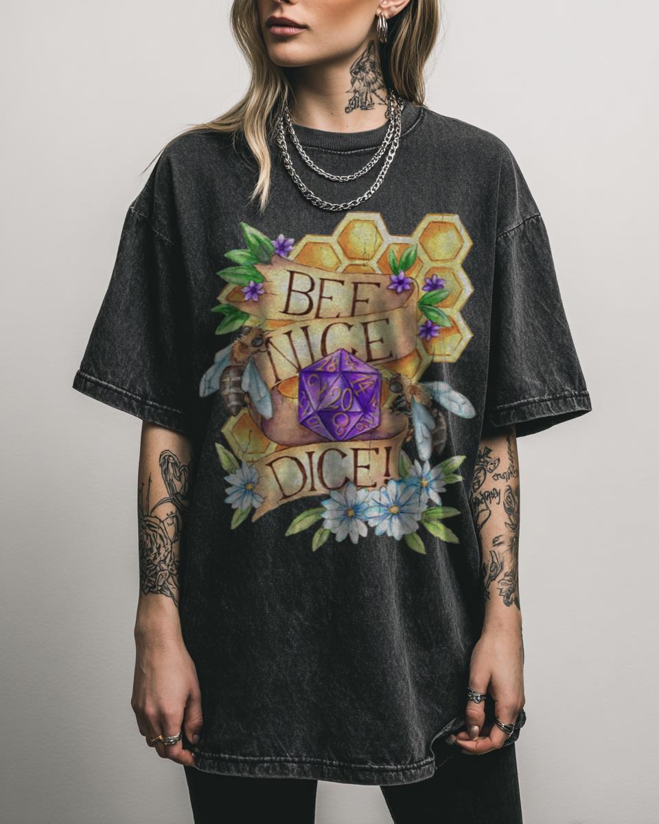 Looking for a charming design that celebrates your love for D&D and nature? This ‘Nice, Dice!’ design combines the thrill of Dungeons and Dragons with the sweetness of summer, featuring a lucky dice adorned with buzzing bees and vibrant flowers. It’s the perfect tee for D&D players, nature lovers, and anyone who appreciates a touch…