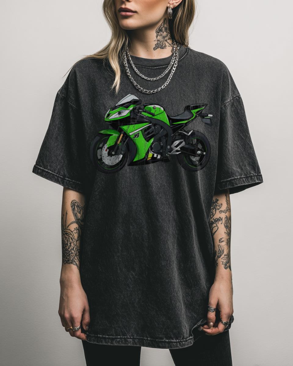 Feel the thrill of the open road with this dynamic Kawasaki Ninja design! This T-shirt celebrates the legendary Kawasaki Ninja, an icon of super sport motorcycles and racing. Featuring elements like the H2R, ZX10R, and the signature green color, this design is a must-have for motorcycle enthusiasts, racing fans, and anyone who loves the power…