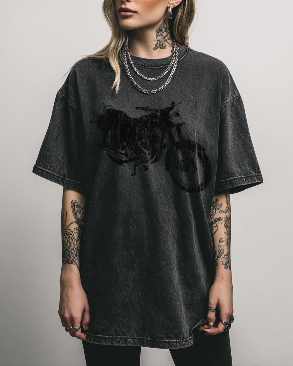 What Makes This Honda CL500 Cyberpunk T-Shirt Unique? Ride into the future with this Honda CL500 Cyberpunk T-shirt, blending classic motorcycle style with a futuristic aesthetic. Featuring a striking graphic on a black acidwash background, this 100% cotton tee offers a comfortable regular fit for moto enthusiasts and cyberpunk fans. Key Features for Motorcycle &…