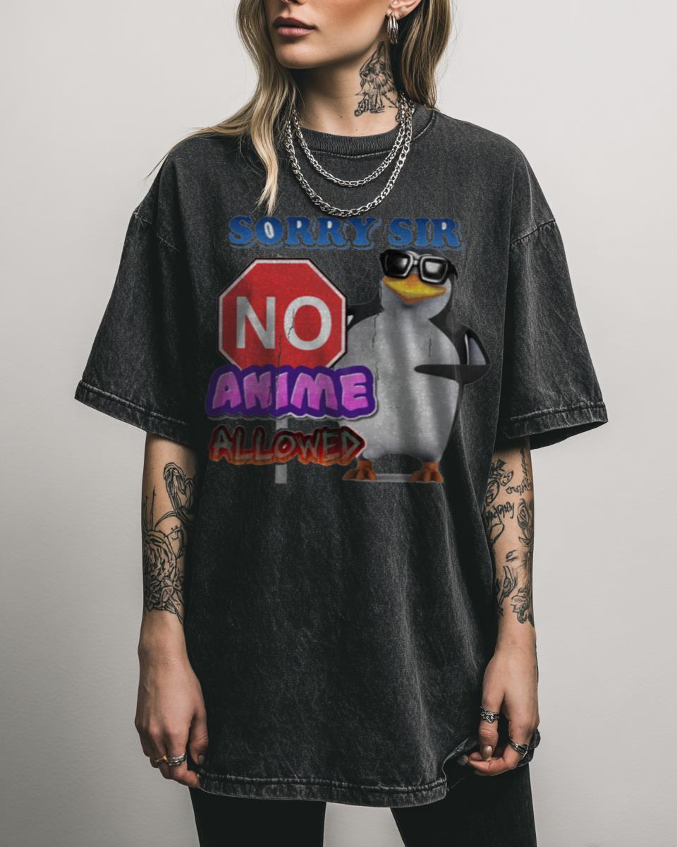 Need a humorous way to express your opinion on anime? Make a bold (and funny) statement with this ‘Sorry Sir NO Anime Allowed’ design, featuring a cool penguin sporting sunglasses. This humorous artwork is a playful meme, perfect for those who enjoy a bit of lighthearted controversy or simply want to wear a unique, funny…