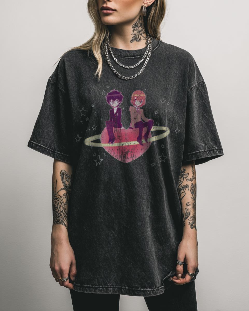 What Makes This “Space Patrol Akeshu” T-Shirt a Unique Crossover? Join the cosmic adventure with this “Space Patrol Akeshu” T-shirt, a fan-created graphic tee that blends the worlds of Persona 5 and Space Patrol Luluco. Featuring characters like Akechi Goro and Akira Kurusu (Ren Amamiya), this black acidwash shirt is perfect for fans of Shin…