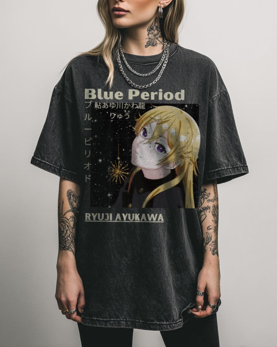 Who is Yatora Yaguchi, the Protagonist of Blue Period? Celebrate the artistic journey of Yatora with our Blue Period Yatora T-Shirt, a fan-created design dedicated to the main protagonist of the acclaimed manga and anime series. This black acidwash graphic tee, made from 100% heavyweight cotton, is perfect for fans of Yatora Yaguchi and his…