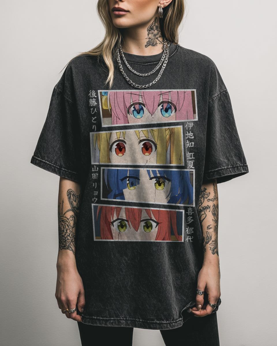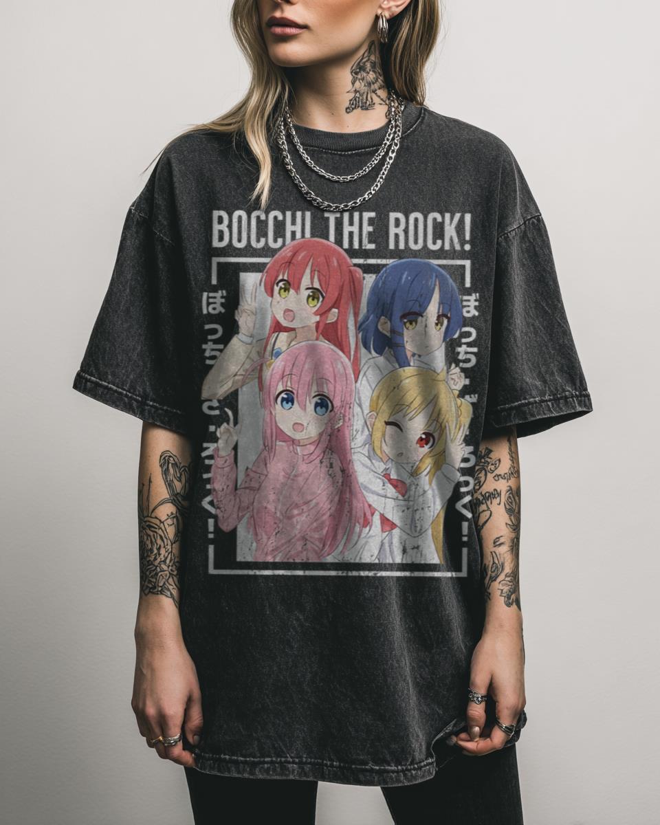 Are you a fan of charming slice-of-life anime with a vintage flair? Discover the delightful world of ‘Bocchi The Rock!’ with this vintage-inspired anime design. Featuring elements that evoke the endearing characters like Hitori Goto, Nijika Ijichi, Ryo Yamada, and Ikuyo Kita, this graphic celebrates the popular Japanese anime and manga series, perfect for fans…