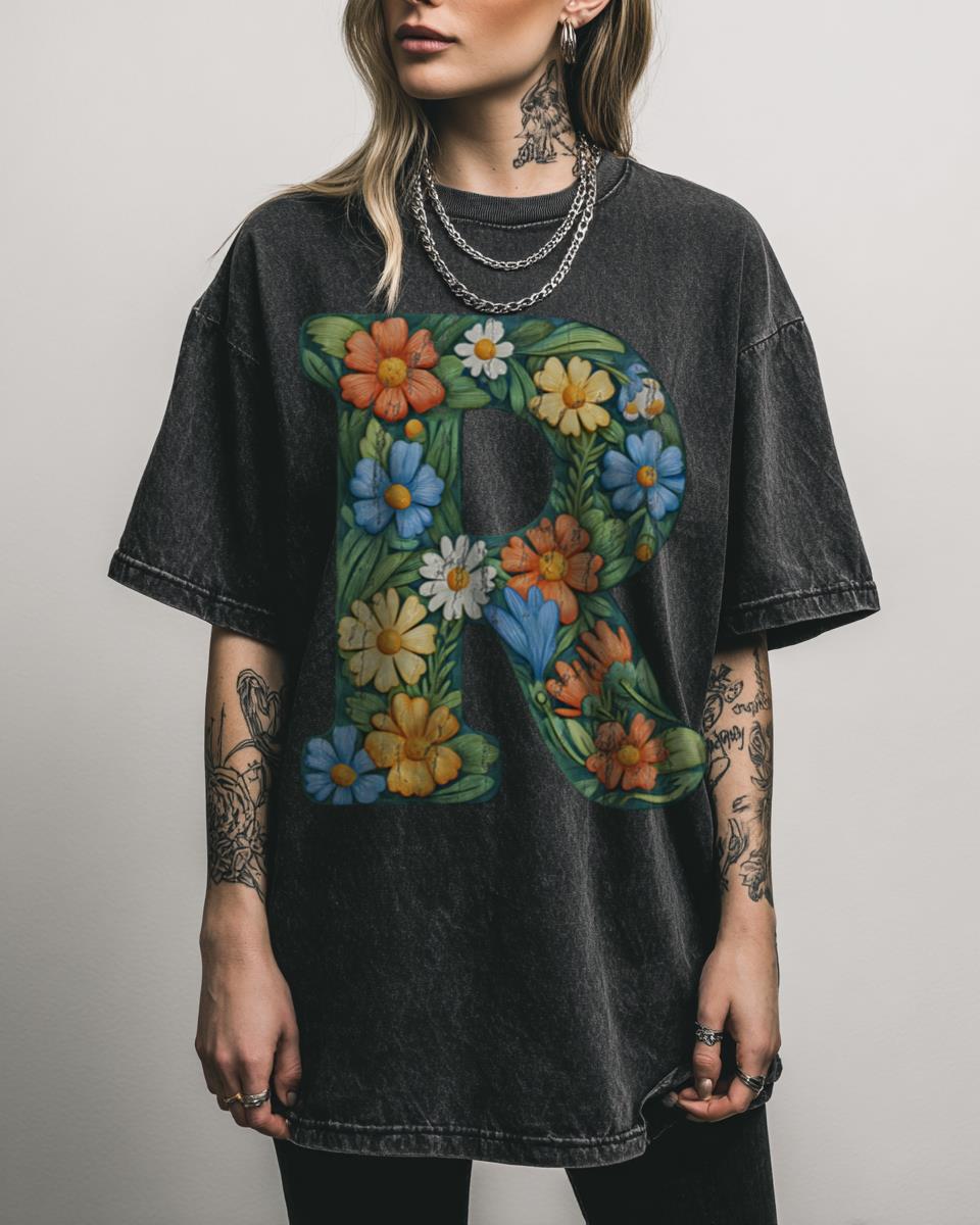 Looking for a personalized touch with a beautiful botanical flair? Adorn yourself with elegance with this “Floral Letter R With Flowers” T-Shirt. This graceful design features the letter R intricately woven with delicate flowers, celebrating nature’s beauty and offering a personalized touch. Perfect for anyone whose name starts with R, or who simply loves charming…