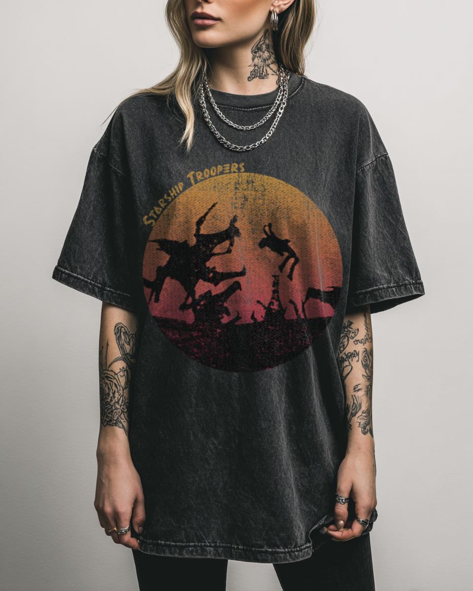 Catch the Sunset Vibe with This Starship Troopers Tee? Embrace the retro sci-fi aesthetic with this **Starship Troopers Sunset Vibe Sci-Fi 90s Movie Acidwash Tee**. Featuring a unique graphic inspired by the cult classic film, this shirt combines a vintage feel with a touch of surfer cool, perfect for fans of science fiction and 90s…