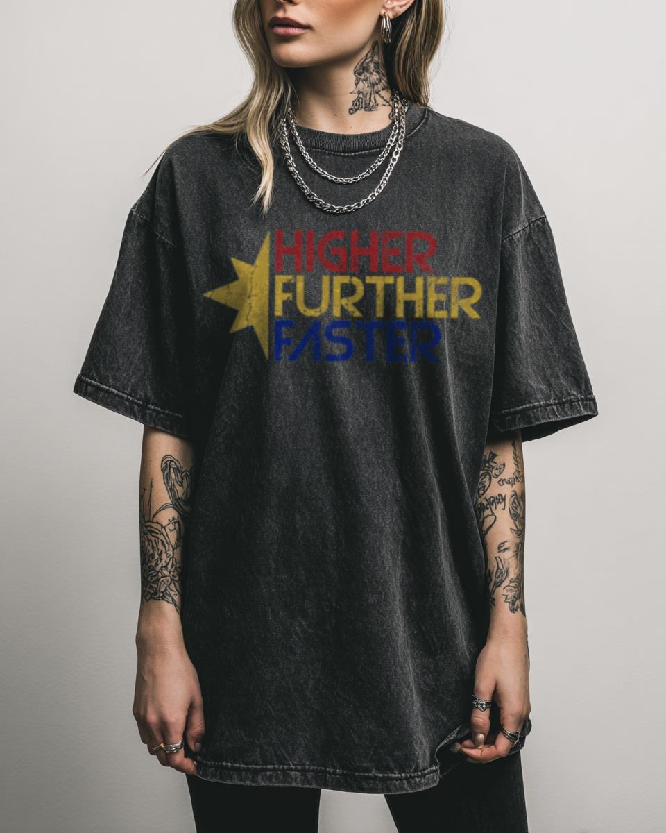 Celebrate Captain Marvel with This ‘Higher Further Faster’ MCU T-Shirt! Display your allegiance to the Marvel Cinematic Universe with this **MCU Captain Marvel ‘Higher Further Faster’ T-shirt**. Featuring the powerful motto associated with Carol Danvers, as portrayed by Brie Larson, this tee is perfect for fans of the movie and the inspiring superheroine. Crafted from…