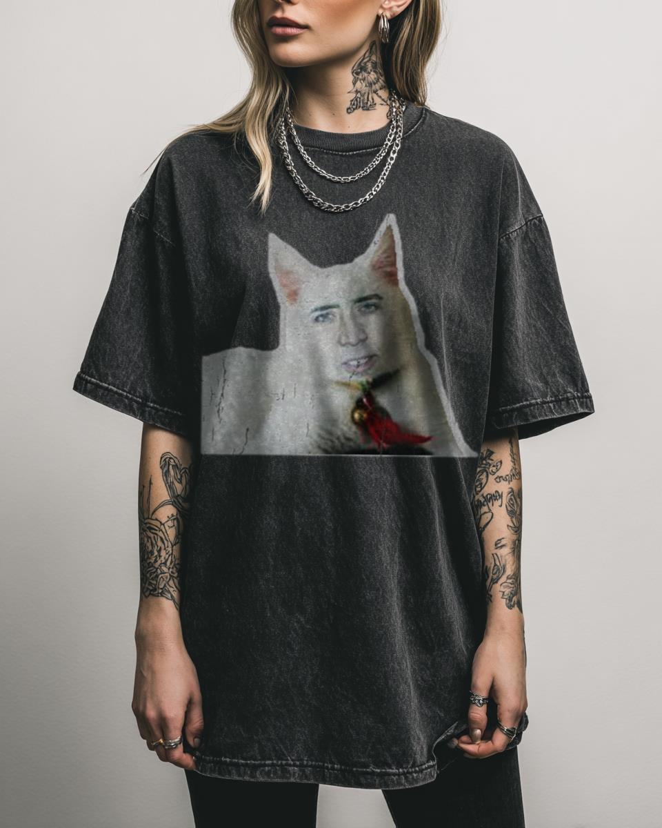 Looking for an utterly purr-fectly bizarre and hilarious tribute to Nicolas Cage? Feast your eyes on the internet’s latest masterpiece: ‘Nicolas Cage as a Cat’! This T-shirt features the inimitable actor transformed into a feline, capturing his intense gaze and unique charm in a truly unexpected way. It’s a fantastic piece of meme art that…