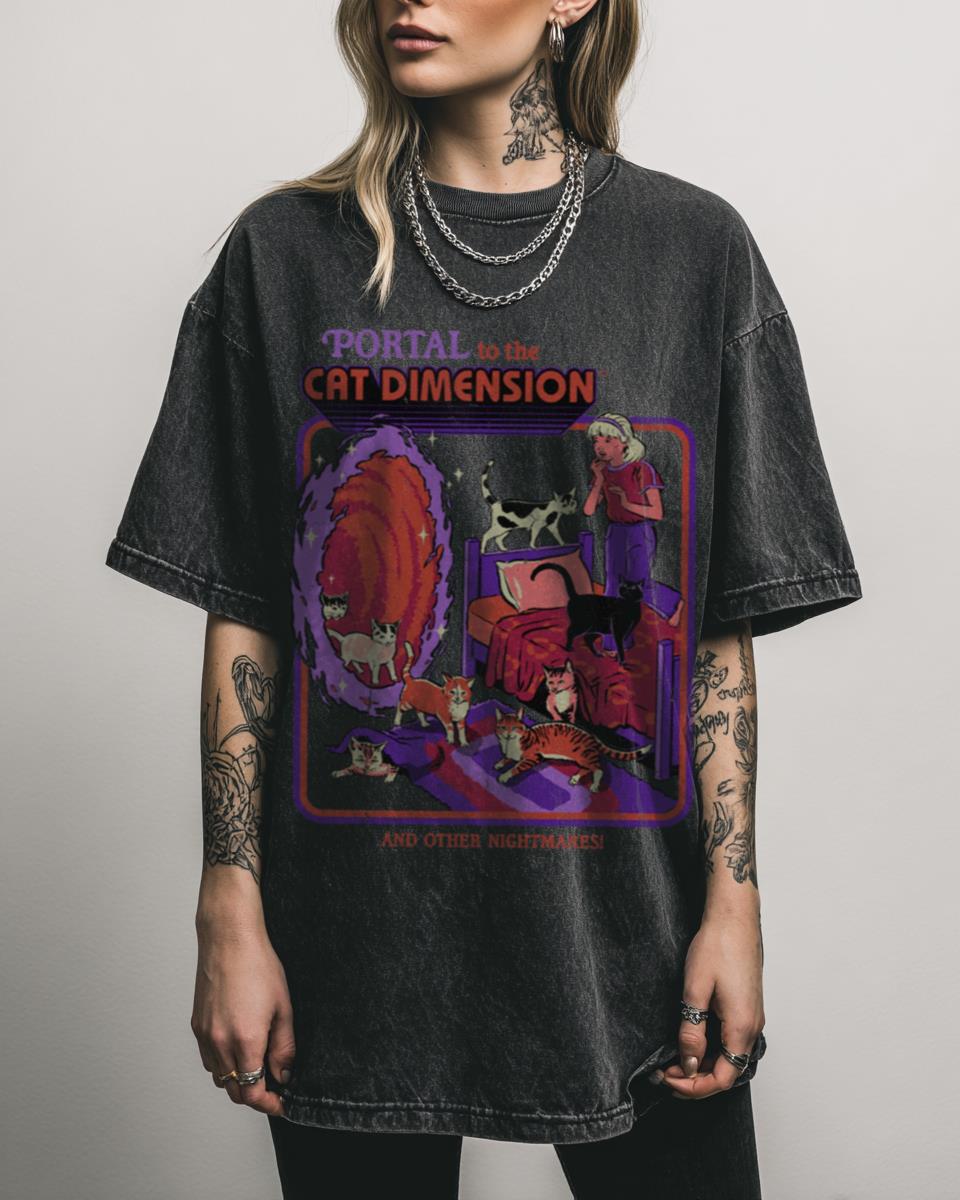 Why Is This Steven Rhodes ‘Cat Dimension’ T-Shirt a Fan Favorite? Step into a world of retro sci-fi horror with this fan-created Steven Rhodes ‘Cat Dimension’ T-Shirt, a hilariously dark and nostalgic graphic tee. Featuring a whimsical yet eerie design of cats entering another dimension, this black acidwash tee is perfect for fans of Steven…