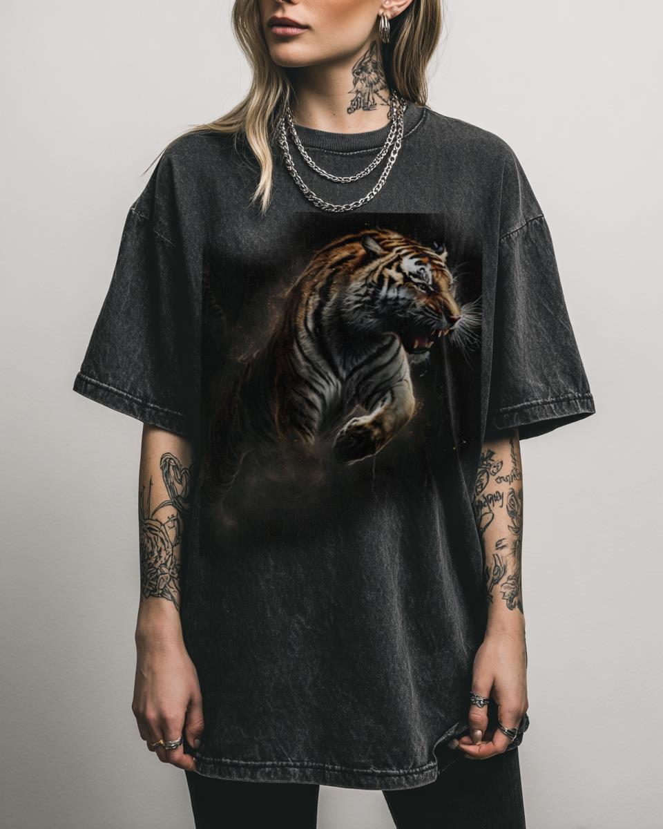 Why This Tiger with Flower Crown T-Shirt Stands Out? Celebrate the beauty of nature with our enchanting Tiger with Flower Crown T-Shirt. This artistic animal portrait features a majestic tiger adorned with a whimsical floral crown, bringing a touch of wild elegance to your wardrobe on a stylish black acidwash tee. Key Features of This…