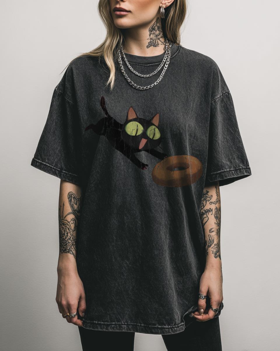 What Makes This Trigun Cat Anime T-Shirt So Adorable? Embrace the chaotic cuteness of the Badlands with this charming Trigun Cat Anime T-shirt. Featuring a delightful cat design inspired by Vash the Stampede and his love for donuts, this acidwash graphic tee is a purr-fect piece of fan art for any Trigun enthusiast or anime…