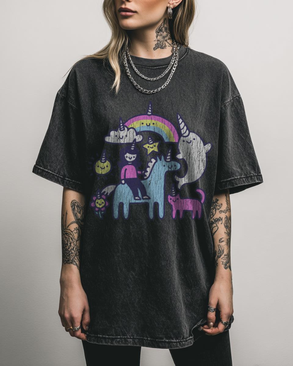 Find Magic Everywhere with This Unicorns Fantasy T-Shirt! Let your imagination soar with this enchanting Unicorns Everywhere fantasy T-shirt, featuring a whimsical graphic of magical creatures. Crafted from heavyweight cotton with a unique black acidwash, this tee is perfect for anyone who believes in magic, rainbows, and mythical wonders. Why This Magical Creature Tee is…