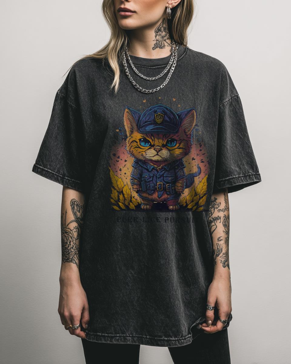 Calling all cat lovers and mystery enthusiasts! Ready for a ‘purr-plexing adventure’? Join the ‘Purr-lice Pursuit’ with this charming T-shirt featuring a whimsical detective cat in a police uniform. This comic book-style illustration captures the spirit of a fearless feline cop on a crime-solving adventure, bringing a lively and charismatic touch to your wardrobe. Why…