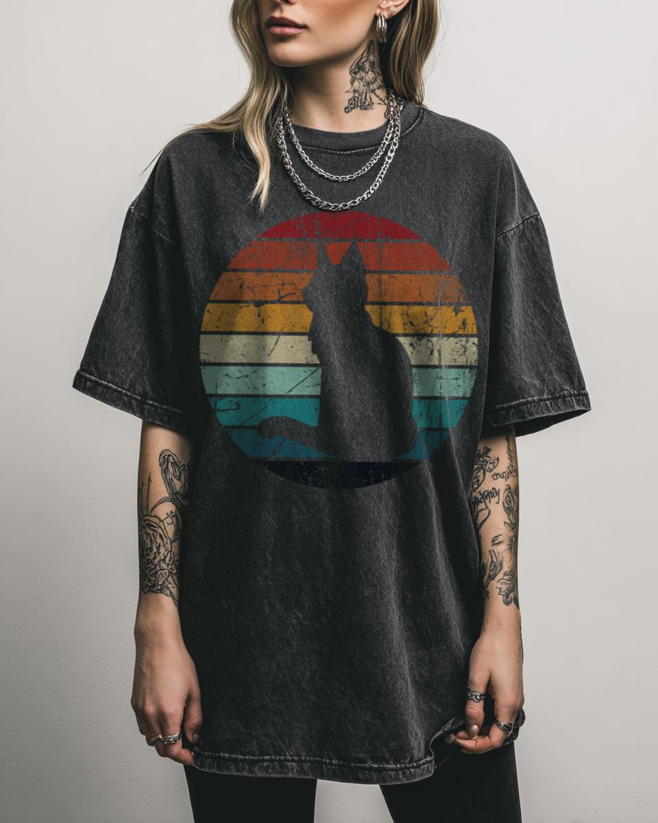 Do you adore cats and have a soft spot for the vibrant 80s era? Bring on the nostalgia with this vintage eighties style retro cat design. Featuring a cool feline in a distressed, 80s aesthetic, this tee is perfect for cat daddies, cat mamas, and any cat lover who appreciates a touch of retro charm….