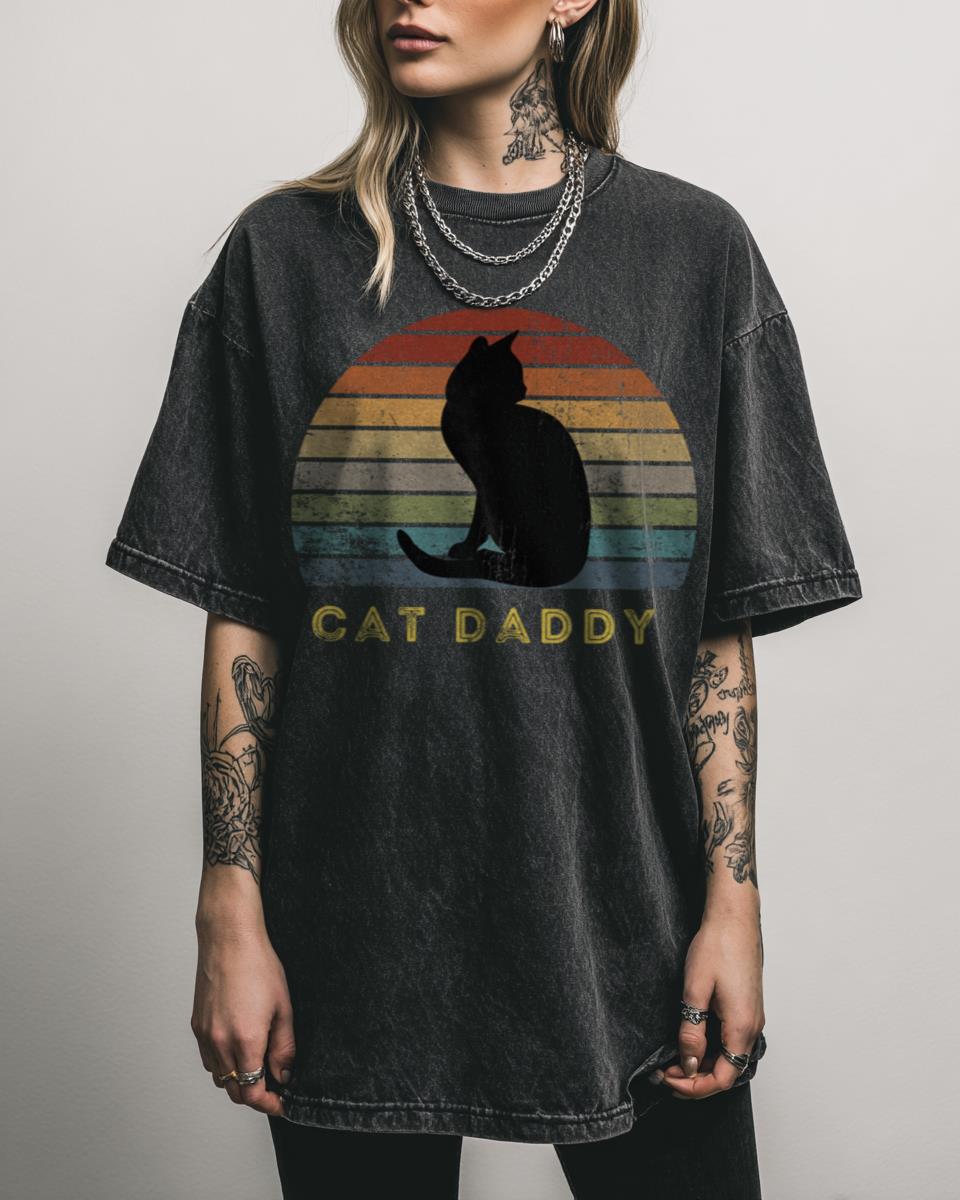 Are you a proud ‘Cat Daddy’ with a love for retro 80s aesthetics and cool felines? Embrace your inner Cat Daddy with this awesome Black Acidwash T-Shirt, featuring a vintage eighties style black cat design. This retro, distressed graphic perfectly captures a classic cool vibe, making it an ideal choice for cat lovers and nostalgia…