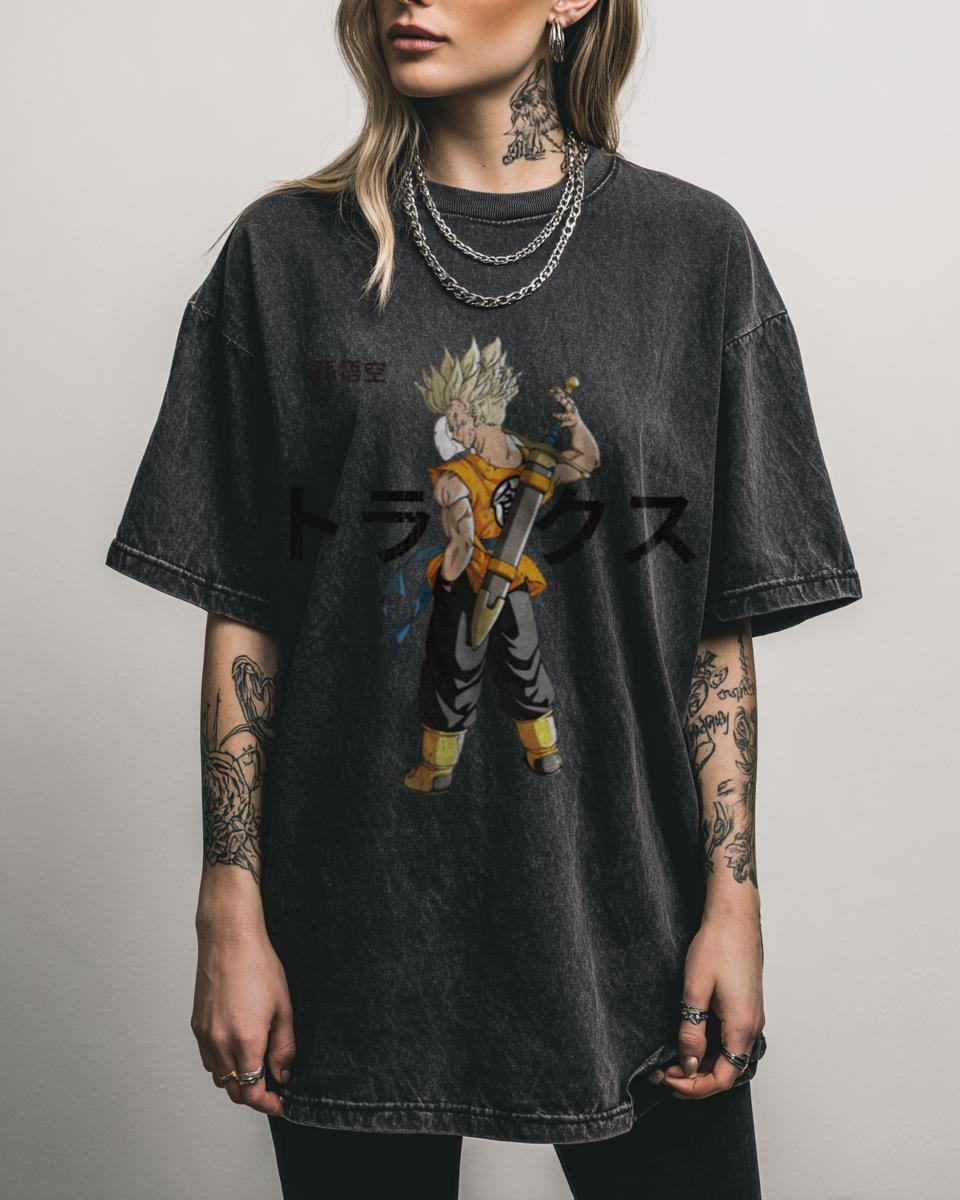 What Makes This Dragon Ball Z Future Trunks T-Shirt Essential? Channel the power of the future with this Dragon Ball Z Future Trunks Super Saiyan T-shirt. Featuring a dynamic fan-created graphic of the iconic alternate timeline warrior, this black acidwash tee is made from 100% heavyweight cotton for comfort and style. Key Features for Dragon…