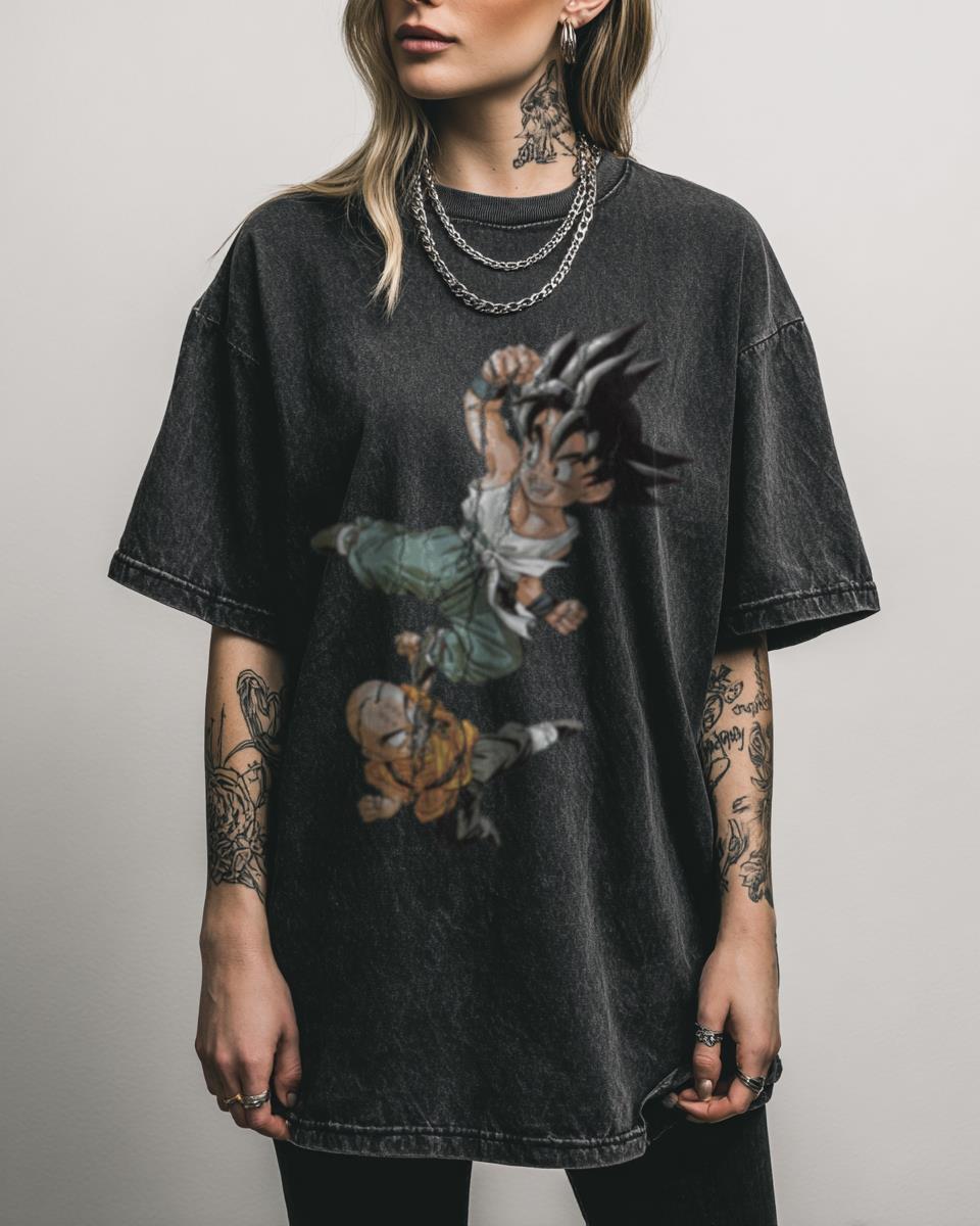 Missing the iconic camaraderie of Goku and Krilin from Dragon Ball Z? Relive the enduring friendship and training days with this awesome Kid Goku and Krilin T-shirt! This design captures the spirit of their early adventures and their journey to become powerful warriors. It’s a perfect tribute to the classic Dragon Ball Z era, celebrating…