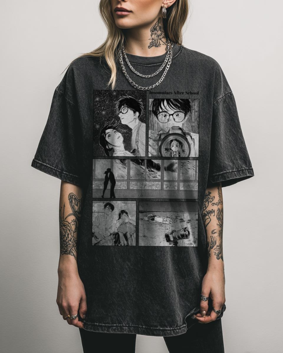 Are you captivated by the serene and starry nights of ‘Insomniacs After School’? Immerse yourself in the beautiful narrative of ‘Insomniacs After School’ with this unique ‘Manga Panels’ design. This graphic features a compilation of comic frames, capturing the essence of the anime’s astronomy theme and the charming story of Ganta Nakami and Isaki Magari….
