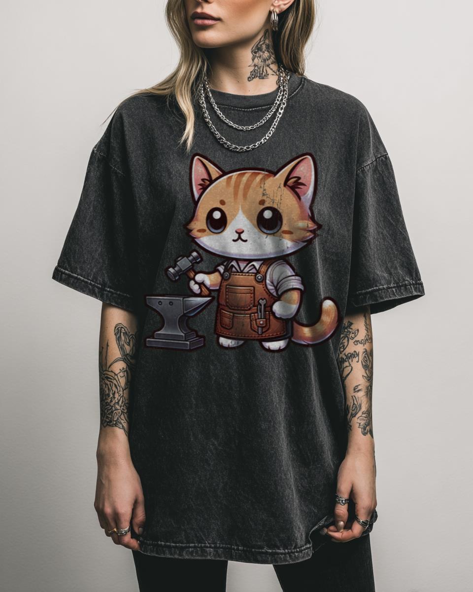 Looking for an adorable and unique design that sparks joy and creativity? Step into the workshop with this charming ‘Kitten’s Forge’ design! This graphic features a determined cartoon kitten, complete with a tiny hammer and leather apron, skillfully working at an anvil. It’s an inventive and heartwarming piece perfect for cat lovers, artisans, and anyone…