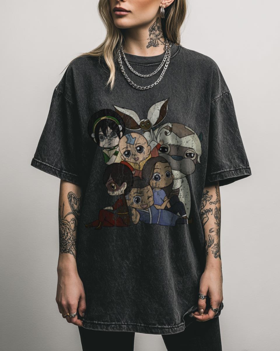 What Makes This Chibi Avatar Gaang T-Shirt So Charming? Gather your elemental powers with this Chibi Avatar Gaang T-Shirt, featuring an adorable depiction of Aang and his friends from Avatar: The Last Airbender. This black acidwash tee, crafted from 100% cotton, is perfect for fans of the beloved animated series. Highlights of This Avatar The…