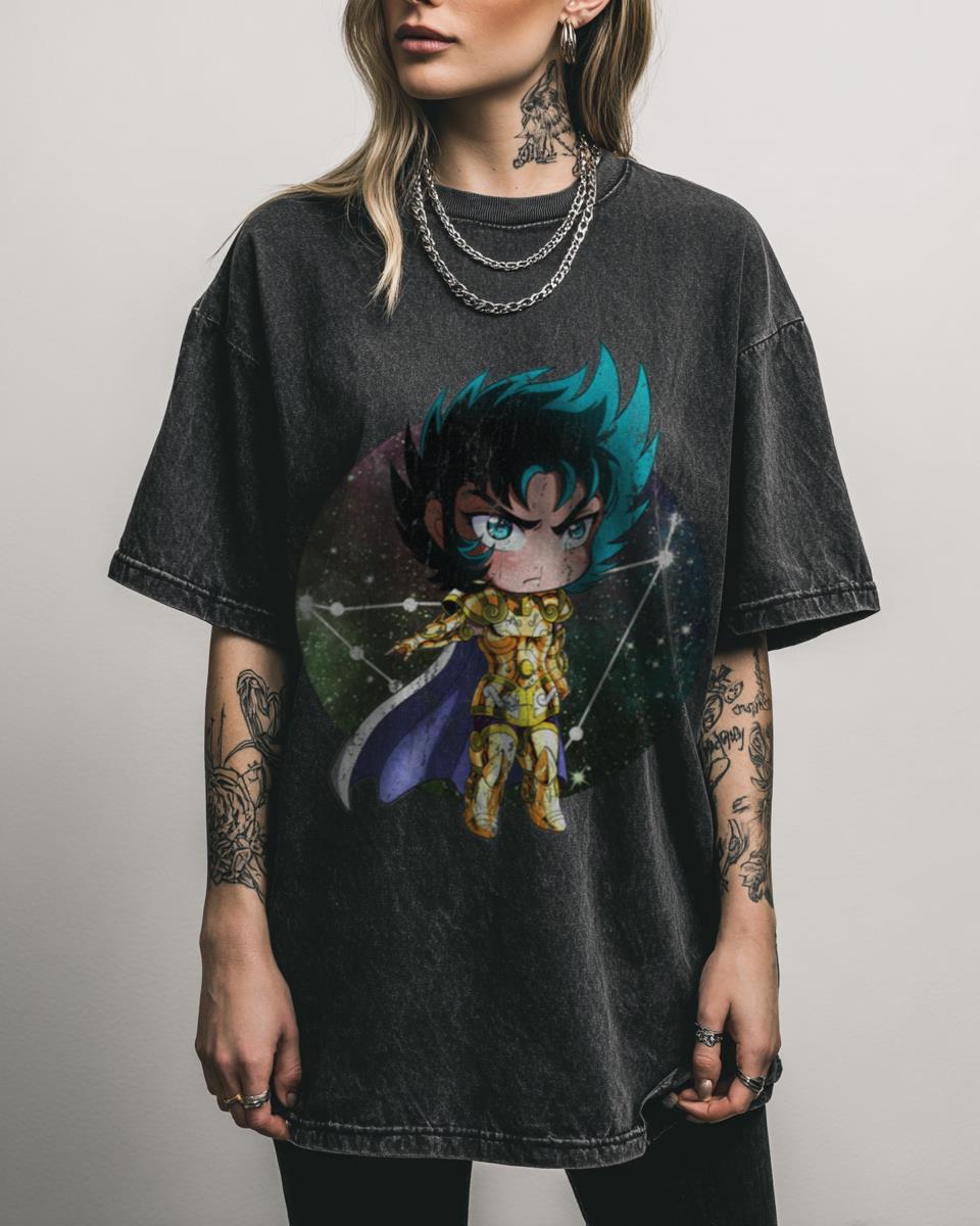 Why This Chibi Capricorn Shura T-Shirt is a Divine Choice? Unleash the power of Excalibur with this Chibi Capricorn Shura T-Shirt, featuring an adorable fan art graphic of the Gold Saint. This black acidwash tee, crafted from 100% cotton, is perfect for fans of Saint Seiya and the Knights of the Zodiac. Highlights of This…