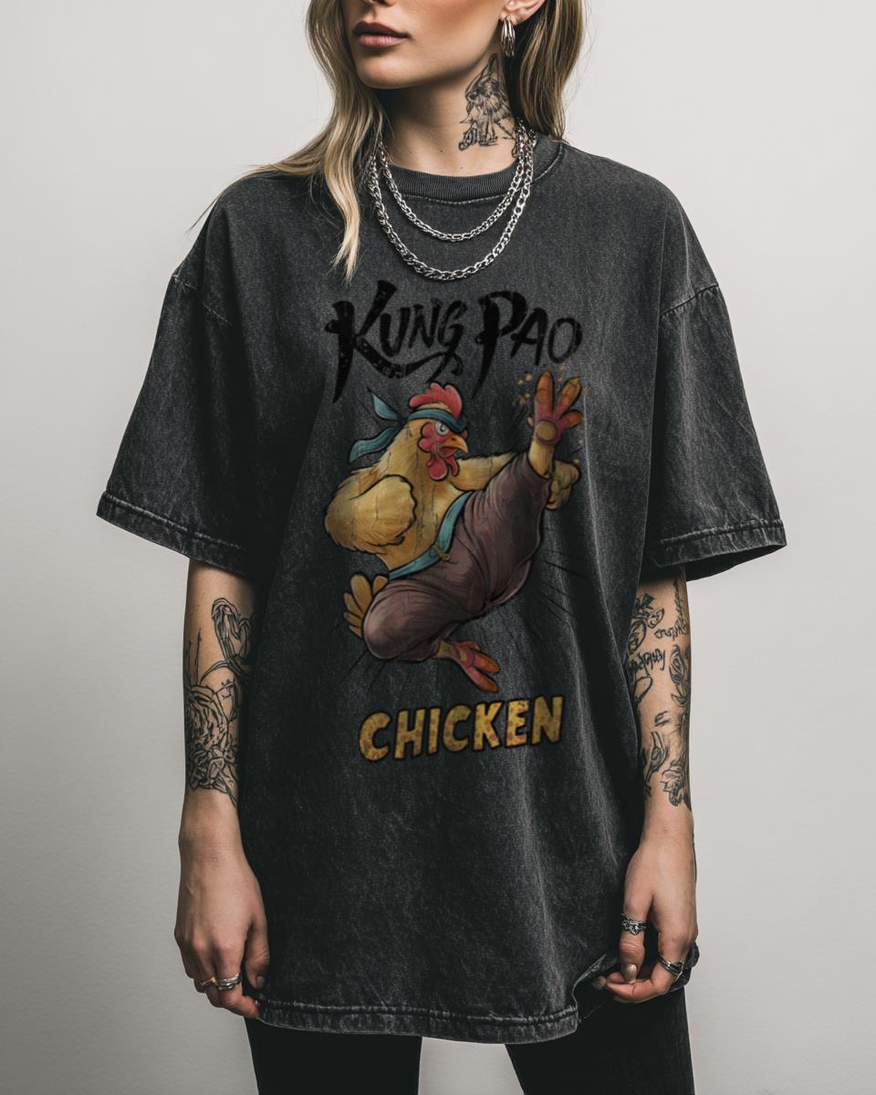 Ready for a deliciously silly and whimsical design that combines food and martial arts? Spice up your wardrobe with this ‘Kung Pao Chicken’ design! Featuring a funny, cartoon rooster in a martial arts pose, this whimsical illustration brings humor and culinary delight together. Perfect for foodies, chicken lovers, and anyone who enjoys a good laugh…