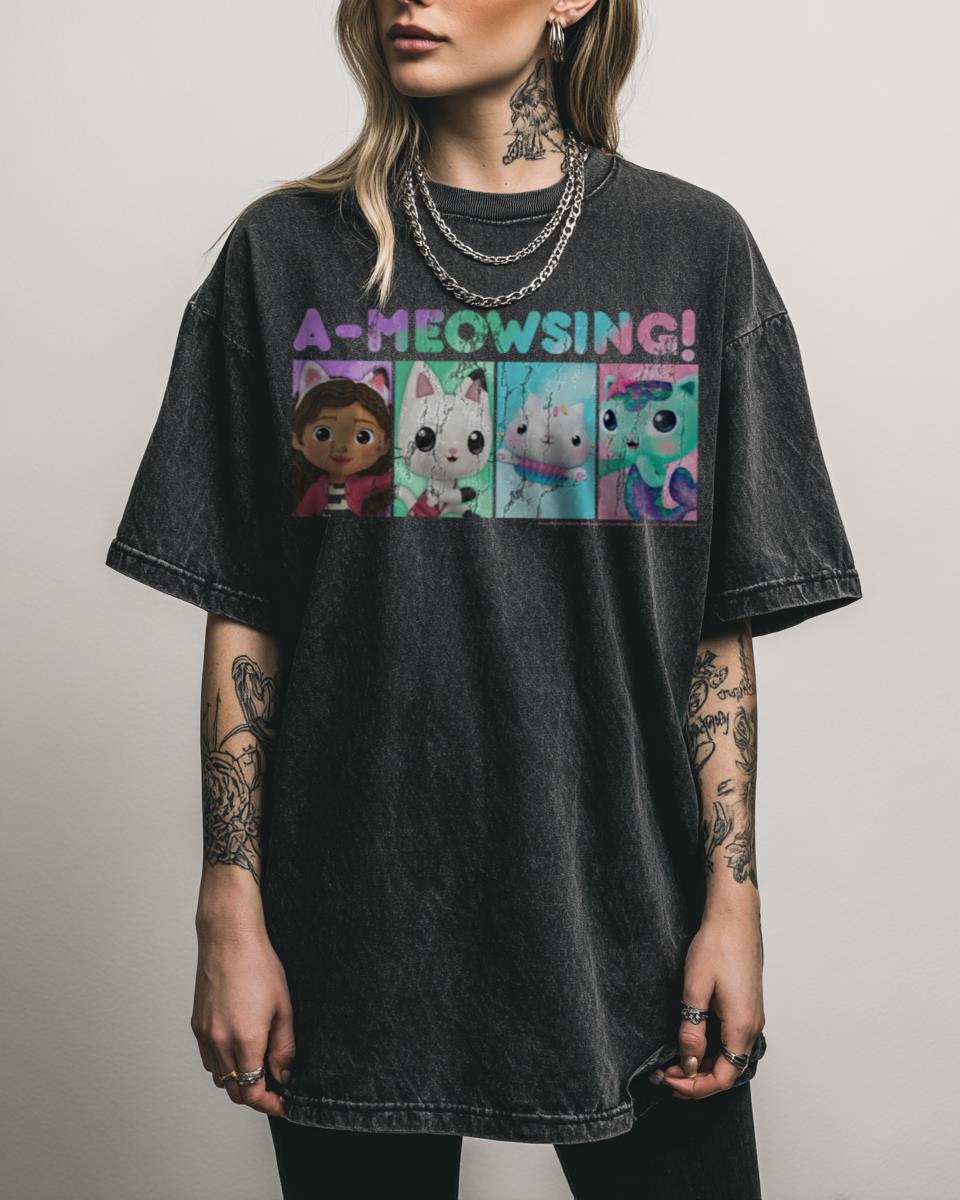 Ready for an ‘A-Meowsing’ time with Gabby and her friends? Join the fun with this delightful ‘Gabby’s Dollhouse Group Box Up A-Meowsing!’ design! This vibrant tee features Gabby and her beloved cat friends, all packed into a fun box, capturing the playful and imaginative spirit of the Netflix show. Perfect for young fans who love…