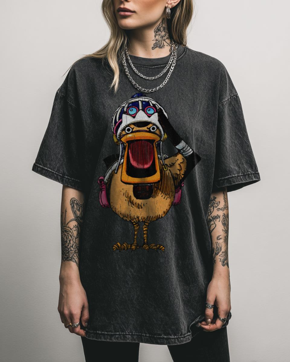 Are you a One Piece fan who cherishes the loyal companions of the Straw Hat Pirates? Celebrate the adorable and brave Karoo, Princess Vivi’s loyal super spot-billed duck, with this “Karoo Vivi” graphic tee from One Piece. This design captures the beloved character, perfect for fans who appreciate the unique charm of Alabasta’s feathered friend…