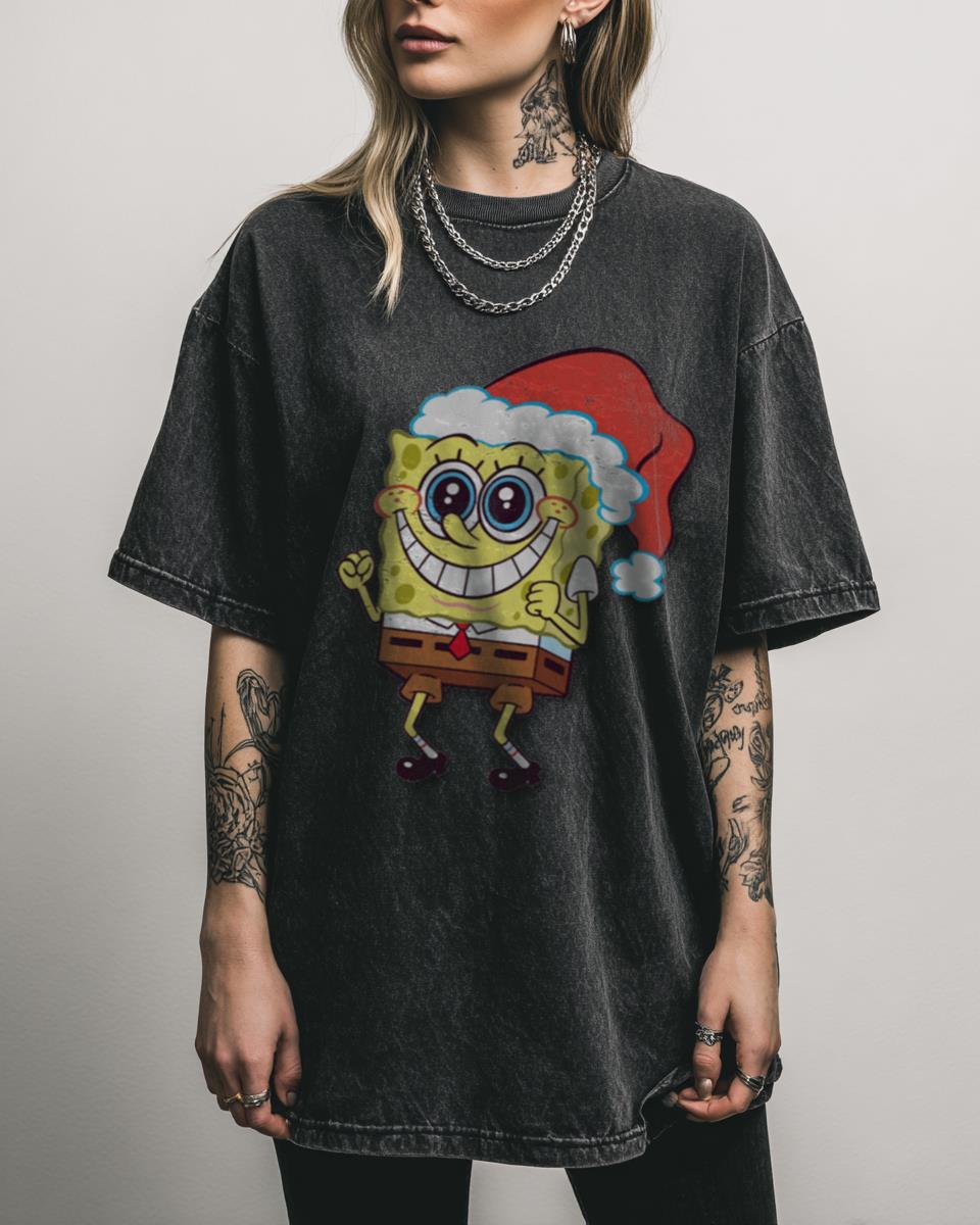What Makes the Christmas SpongeBob Cartoon T-Shirt a Holiday Delight? Have a jolly holiday season in Bikini Bottom with this fun Christmas SpongeBob cartoon T-shirt. Featuring everyone’s favorite pineapple-dwelling sponge in a festive scene, this black acidwash tee is perfect for fans of SpongeBob SquarePants during Christmas time. Key Features of This Funny Holiday Fan…