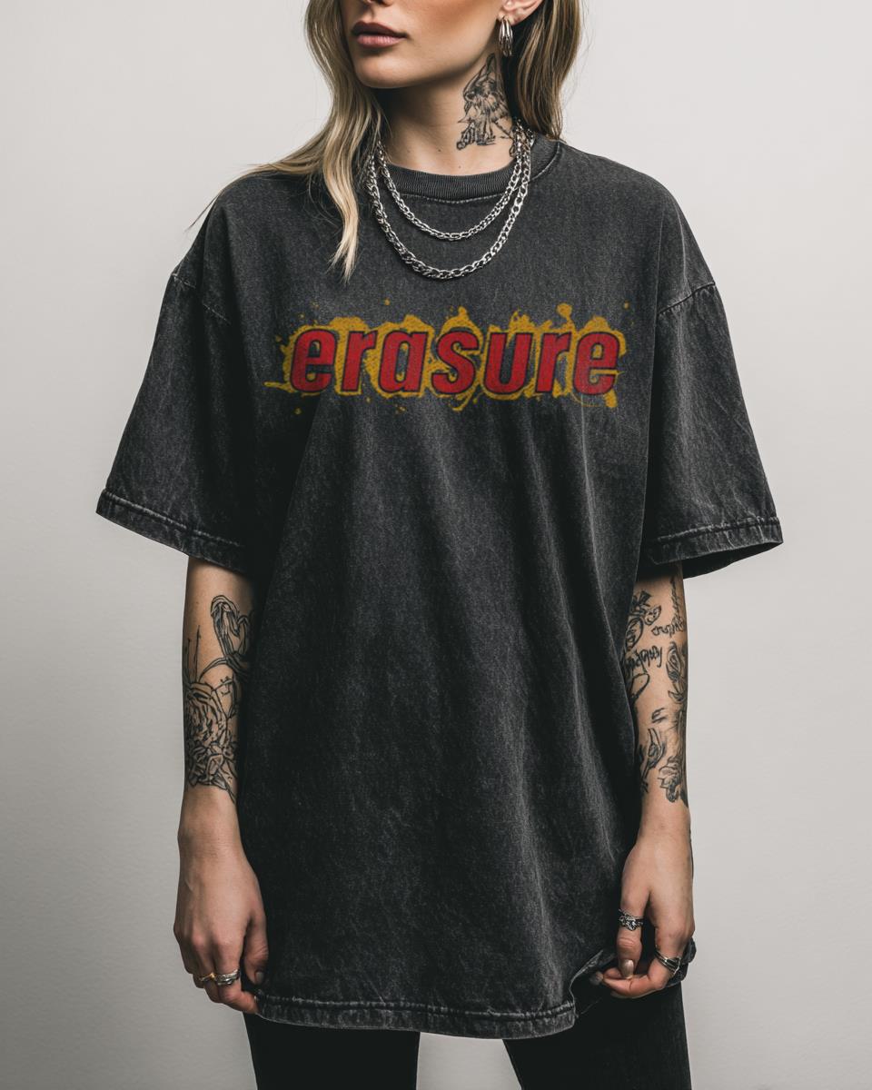 Why is This Erasure Band T-Shirt a Must-Have for 80s Fans? Step back into the golden age of synth-pop with this Erasure Band T-Shirt. Celebrating the iconic 80s group, this graphic tee features a fan-inspired design on a stylish black acidwash, perfect for showing your love for classic new wave music. Features of This Retro…