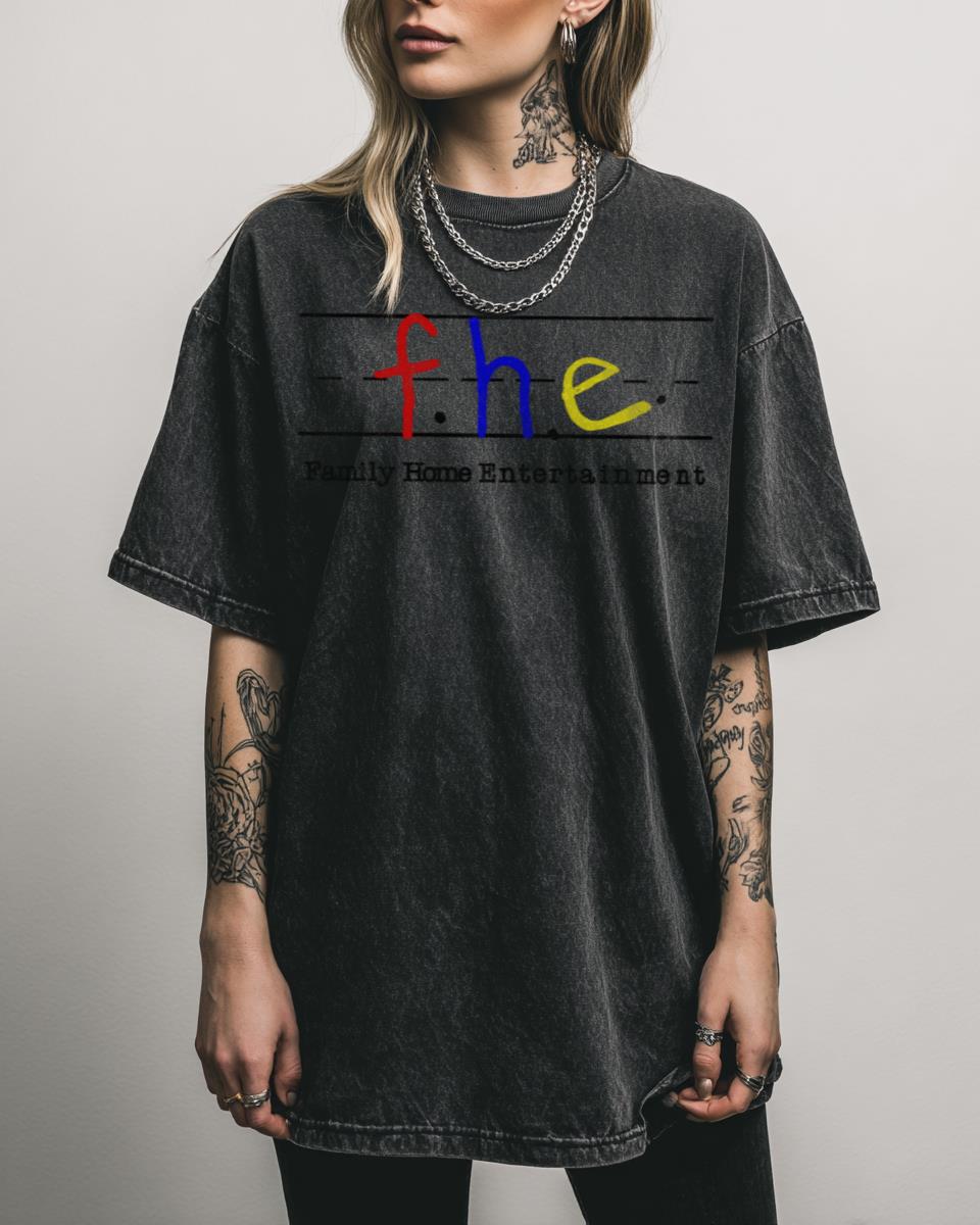 Take a trip down memory lane to the golden era of home video! This ‘FHE’ (Family Home Entertainment) design is a nostalgic throwback to the 80s, celebrating the iconic VHS tapes and cartoons that defined a generation’s childhood. Perfect for retro enthusiasts. Why You’ll Love This: Boasts a retro printed graphic of the FHE (Family…