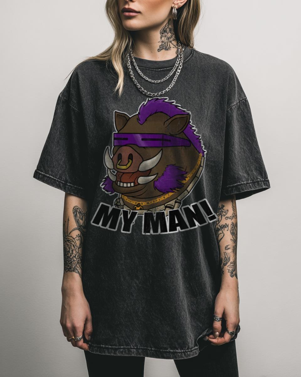 Ready to hang out with your favorite mutant warthog? Shout ‘My Man!’ with this awesome ‘Bebop – My Man!’ T-shirt, celebrating the iconic mutant from Teenage Mutant Ninja Turtles! This retro design is perfect for fans of the 80s cartoon, Out of the Shadows movie, and classic TMNT. It’s a fun and nostalgic way to…