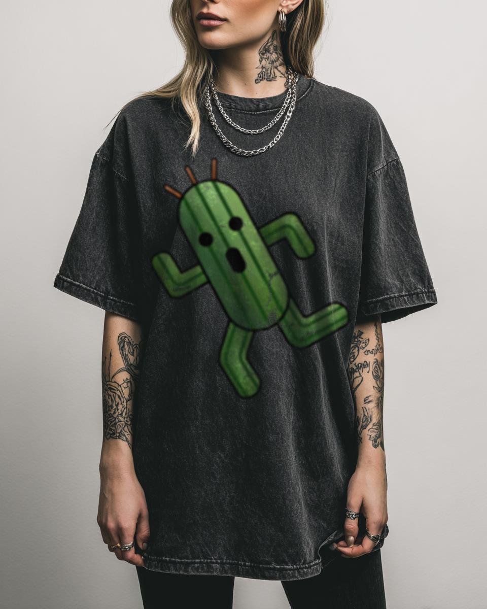 Calling all Final Fantasy adventurers! Ready to add a touch of whimsy to your wardrobe? This adorable T-shirt features the iconic Cactuar from the legendary ‘Final Fantasy’ RPG series. Known for its cute yet elusive nature, this design is a charming tribute to one of gaming’s most recognizable characters, perfect for any video game enthusiast….