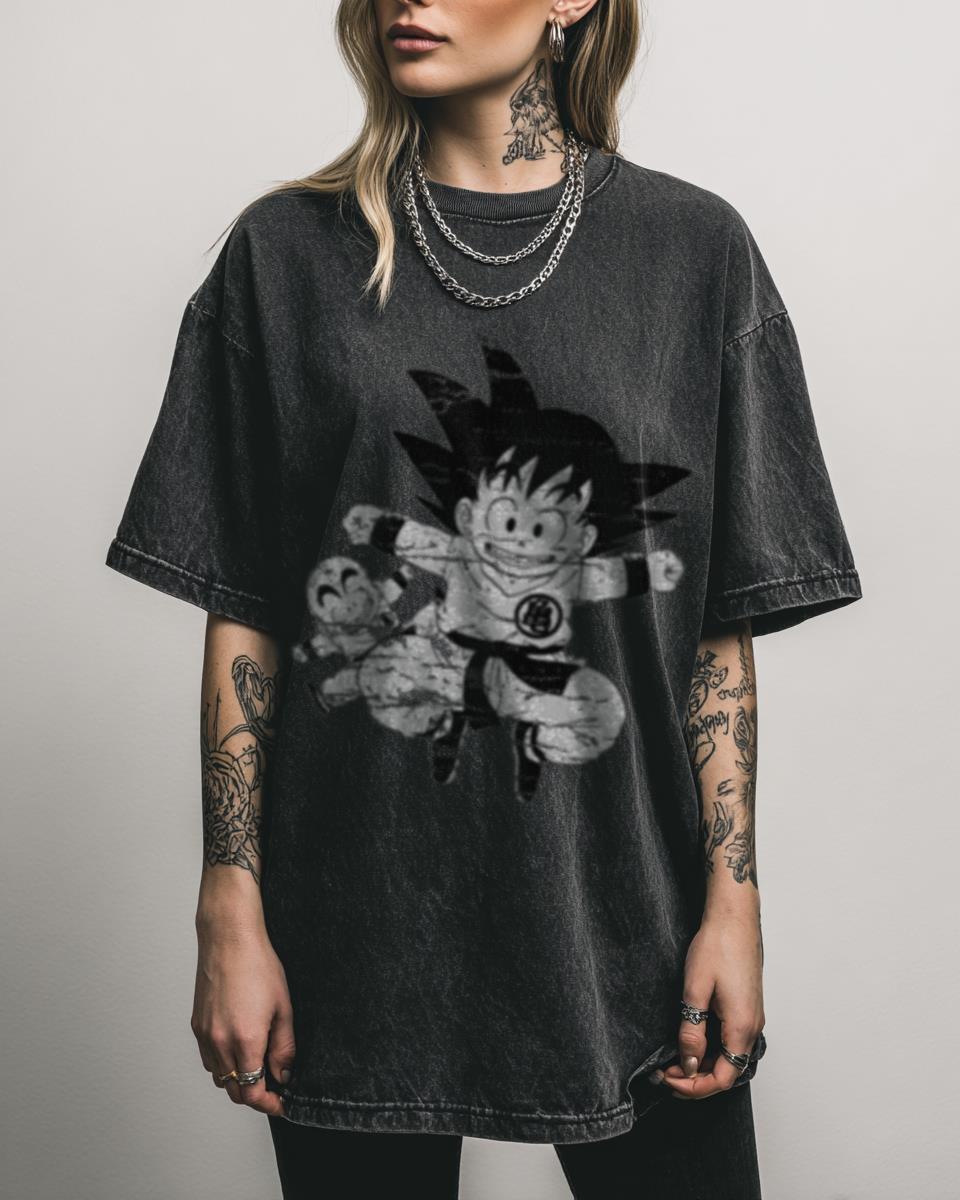 Do you dream of soaring through the sky on the Flying Nimbus? Relive the classic adventures of Kid Goku with this enchanting ‘Dragonball’ tee! Featuring young Goku gracefully riding his iconic Flying Nimbus, this design captures the innocent yet powerful beginnings of the legendary Saiyan. It’s a nostalgic piece for fans of Dragon Ball, Dragon…